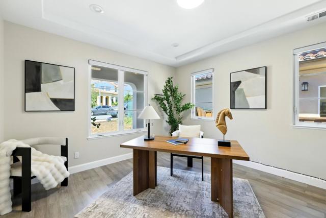 Welcome to this Spanish-style luxury home nestled against the scenic foothills of Fremont's highly sought-after Mission District! With NO HOA ! The main level boasts a private en-suite bedroom with soaring 12-foot ceilings, ideal for guests or multi-generational living. The gourmet kitchen impresses with a sleek Quartz waterfall island, SS appliances, and a generous walk-in pantry. It flows seamlessly into the expansive living space and a bright enclosed sunroom, perfect for year-round enjoyment. Additional features include a well-appointed mudroom, a stylish half bath, and a 3-car finished garage equipped with EV charging outlets. The home also offers dual-zone central heating and cooling, elegant whole-house custom window treatments, and high-end built-in cabinetry in the den. Upstairs, a spacious loft landing opens to a balcony with tranquil hillside views. The primary suite serves as a luxurious retreat, complete with a soaking tub, separate shower, dual vanities, and a walk-in closet. Three additional bedrooms each include en-suite or nearby baths, and the full laundry room adds everyday convenience. Situated close to major freeways, shopping, and dining, this exceptional property offers location, luxury, and lifestyle in one of Fremont's most prestigious neighborhoods.