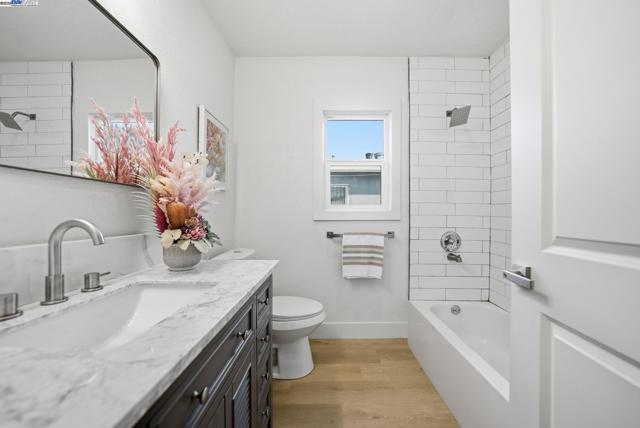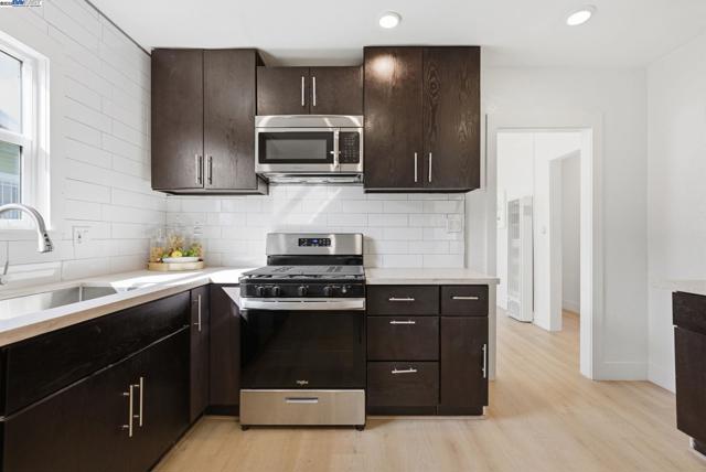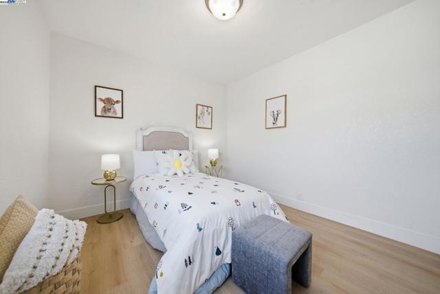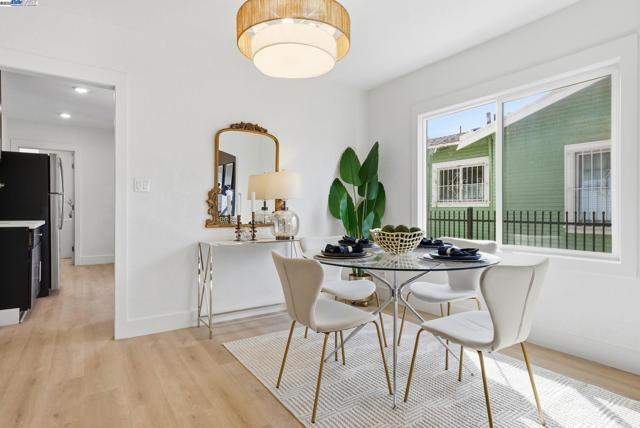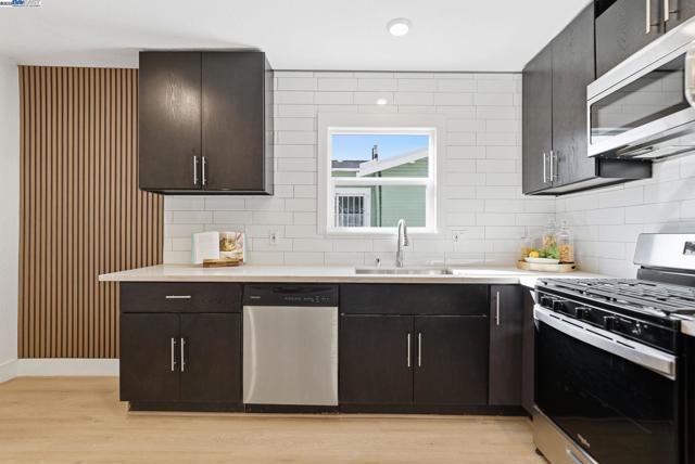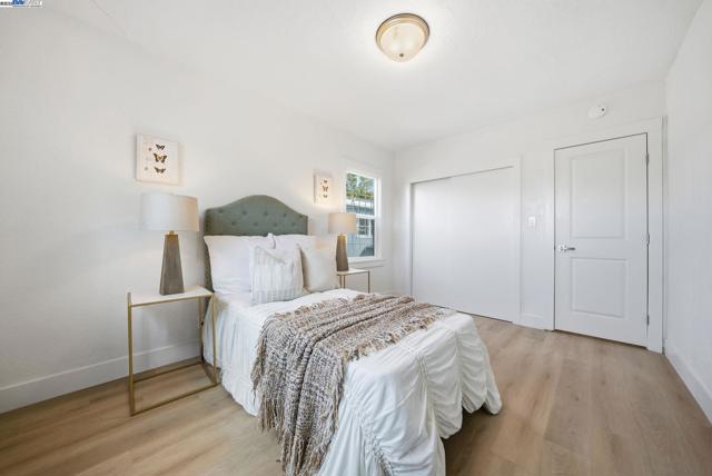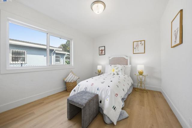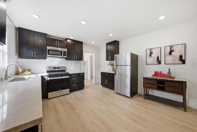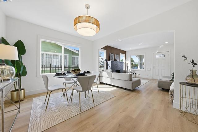 Welcome to this charming 3-bedroom, 2-bath Oakland home offering 1,344 sq. ft. of comfortable living space on a 4,000 sq. ft. lot. Enjoy the convenience of an automatic gate to pull into your long driveway with a detached garage set back. Step inside to a bright and inviting layout featuring a modern kitchen with quartz countertops and stylish backsplash, complemented by fresh interior and exterior paint and new plank flooring throughout. Both bathrooms showcase a clean, refreshed look, and the home includes updated systems and a newer roof for added peace of mind. The spacious backyard and detached garage provide excellent potential for expansion or creative use, including the possibility of an ADU conversion (buyer to verify). Conveniently located near schools, parks, and commuter routes, this home is ideal for first-time buyers or families looking for great value in Oakland. FHA loans welcome.
