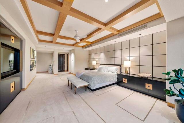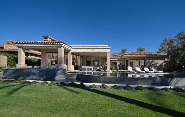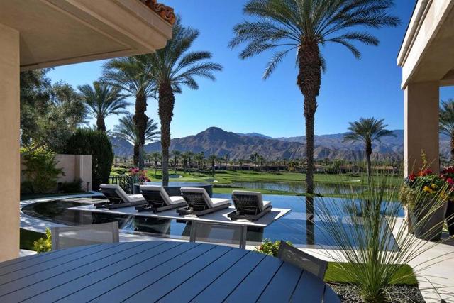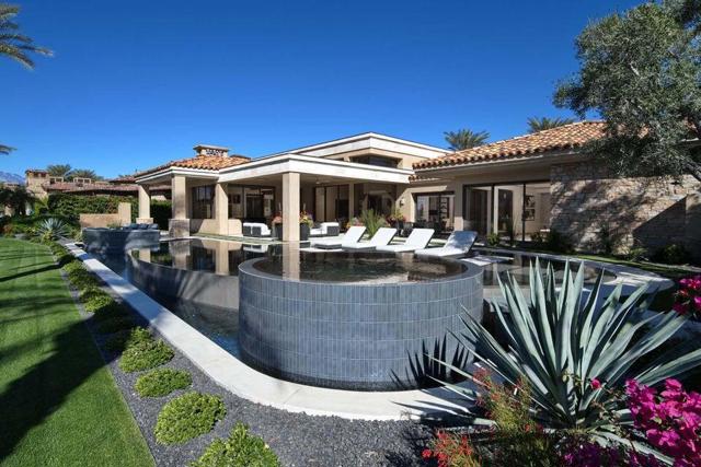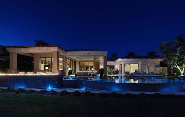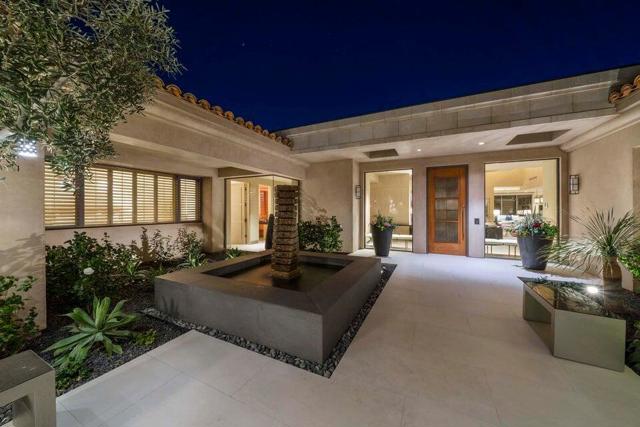 Introducing a unique estate in the exclusive Toscana Country Club, offering breathtaking panoramic views of the club's south-course and majestic mountains. This property is an ideal retreat for those seeking elegance and tranquility. The home underwent an extensive exterior renovation in Fall 2023, transforming it into a masterpiece. Designed by Seattle-based architect Regan McClellan, the backyard features a custom zero-edge infinity pool and spa, blending water and fire elements. The eclipse-shaped pool mirrors the fire pit pad, while stepping stones lead to a lounging pad submerged in just a quarter-inch of water, creating a floating effect. The outdoor space also includes stunning landscaping, custom hardscapes, and a redesigned front walk-up, completed by West Coast Builders and Mirador Landscape. Recognized as one of the ''Greatest Pools of 2024'' by Pebble Technology, the estate's $1.8 million exterior transformation is a standout. The property also boasts a 14.76-kilowatt solar system, producing an estimated 23,000 kWh annually. Newly installed HVAC units ensure year-round comfort. Inside, the home features spacious living areas, elegant finishes, and exquisite Restoration Hardware Outdoor furnishings. The secondary bedrooms are very spacious and thoughtfully designed with beautiful built-ins, offering a perfect retreat for guests. A separate office with stunning views of the South Mountains overlooks the pool and outdoor area, providing an inspiring space to work. This ultra-luxury home offers modern amenities, dramatic views, and an extraordinary outdoor oasis, making it the height of Southern California living.
