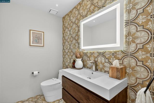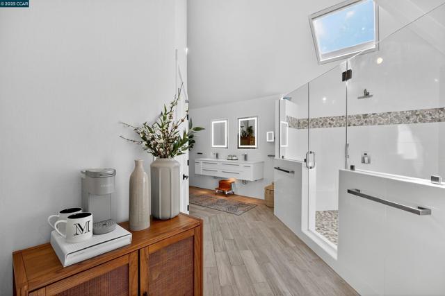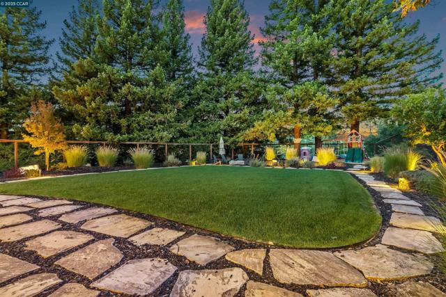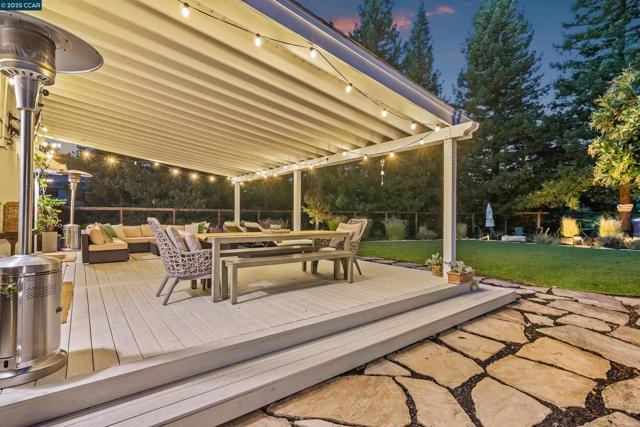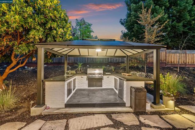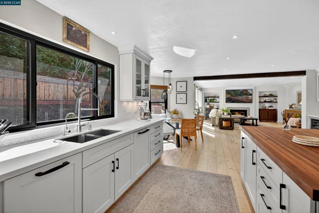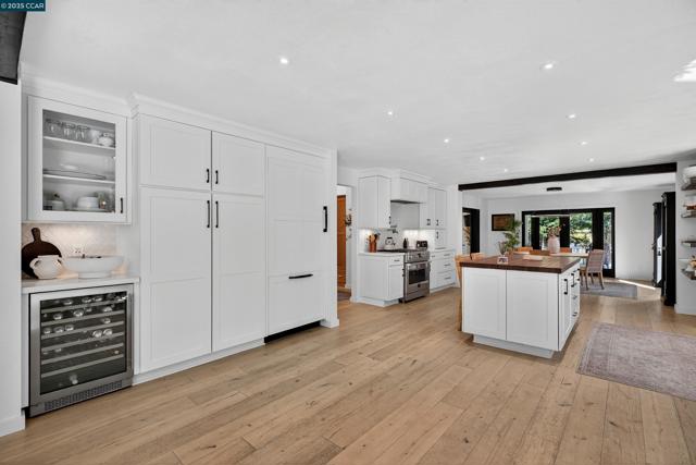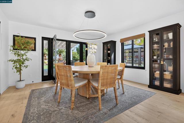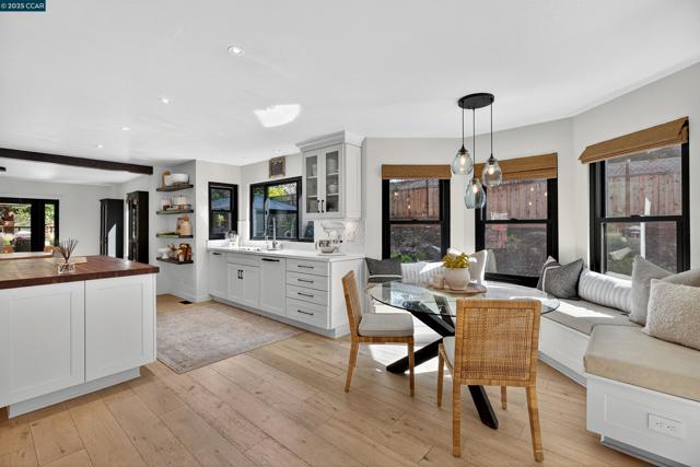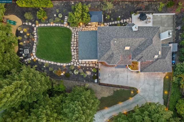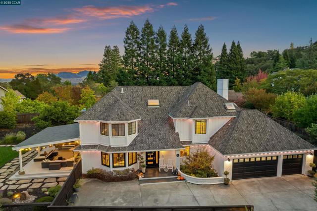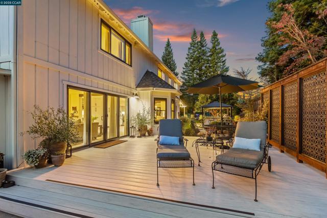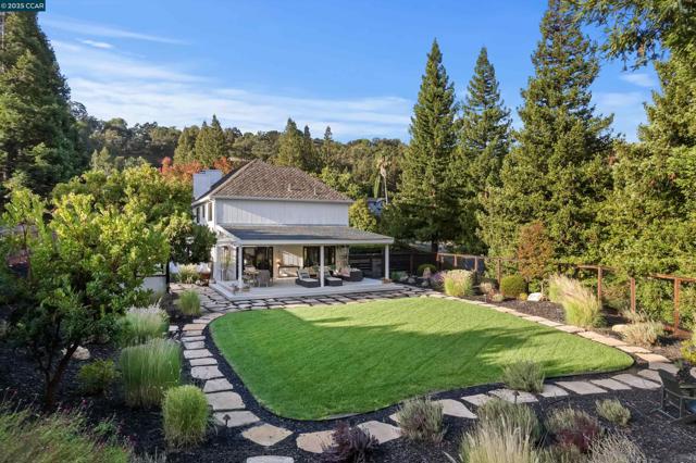 Modern luxury living in this completely remodeled 3,207 sq ft home featuring 4 bedrooms plus office, 3 full bathrooms, & one-half bathroom. Situated on a private .84-acre lot, this residence is designed for those who love the outdoors, offering exceptional indoor-outdoor flow and stylish finishes throughout. Open eat-in kitchen and family room combination with custom shaker cabinetry, butcher block island, built-in breakfast nook seating, 6-burner Fulgor gas range, wine refrigerator, and abundant storage. The spacious family room includes a shiplap ceiling & gas fireplace, opening to a large outdoor deck. A generous formal living and dining room features French doors that lead to a California room for year-round enjoyment. Four oversized bedrooms include a luxurious primary suite with an impressive bathroom & closet space. A second ensuite bedroom plus 2 additional bedrooms complete the upstairs. The executive office located on the lower-level features beautiful glass doors, offering both style & privacy. The professionally landscaped yard showcases an outdoor kitchen, sport court, custom fountain, and majestic redwoods. The property also includes a 3-car garage, providing storage and convenience. Located just steps from local trails & within easy reach of Briones Regional Park.