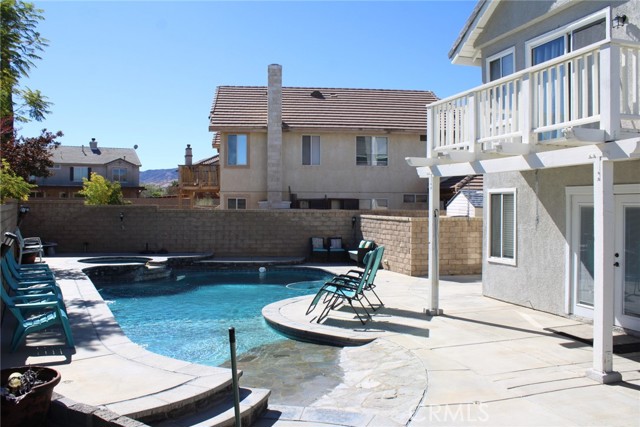 Beautiful 5-bedroom, 3-bath home located in the desirable West Palmdale area. This spacious 2,453 sq ft residence offers a bright open layout, high ceilings, and plenty of natural light. The kitchen features ample cabinet space and connects seamlessly to the dining and living areas, perfect for entertaining. Enjoy a large primary suite with private bath and walk-in closet. The backyard includes a sparkling pool and patio area ideal for gatherings and relaxation. Conveniently located near schools, parks, shopping, and easy freeway access. A great opportunity to own a well-maintained home in a quiet cul-de-sac community.