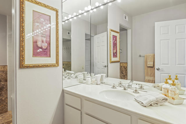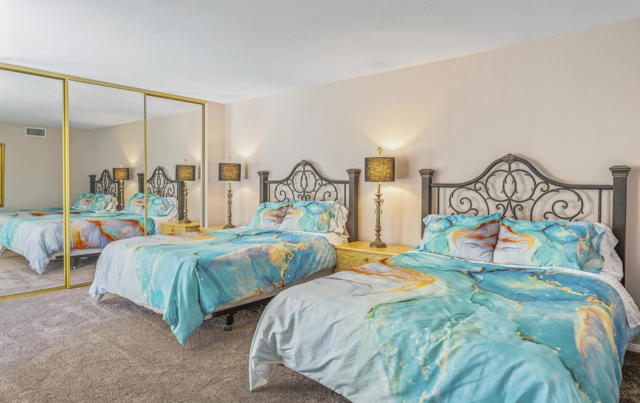 Welcome back to the desert lifestyle you've been dreaming of! This beautifully spacious 3-bedroom, 3-bath condo in the sought-after Montego West enclave of Bermuda Dunes Country Club offers nearly 2,400 sq ft of comfortable elegance. The open-concept living and dining areas feature dramatic vaulted ceilings, a fireplace, and panoramic views of the golf course, driving range, clubhouse, and surrounding mountains.A versatile den/family room--complete with its own fireplace--can easily serve as a second primary suite, while a conveniently added office nook just off the dining room enhances functionality and flow.Whether you're seeking a full-time home or a seasonal retreat, this property offers resort-style living at its finest. Montego West residents enjoy access to multiple pools, spas, and tennis courts, with HOA fees covering exterior maintenance, roofing, landscaping, trash, and more. Located within Imperial Irrigation District for lower electric rates and secured by 24-hour guard-gated access, this home perfectly blends comfort, convenience, and value.