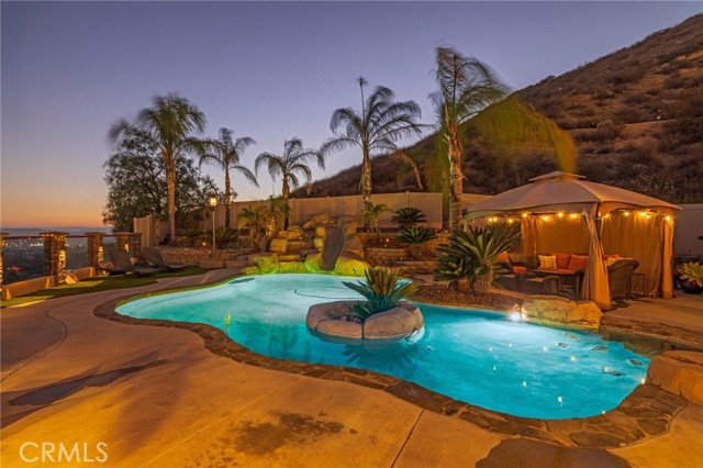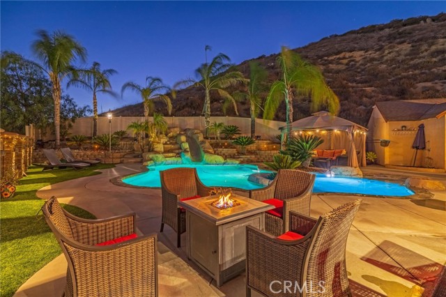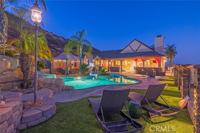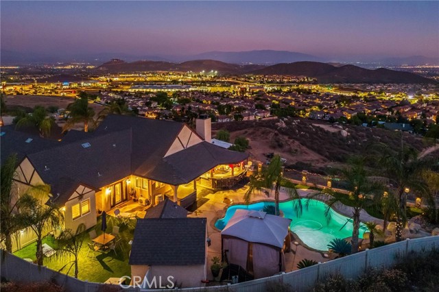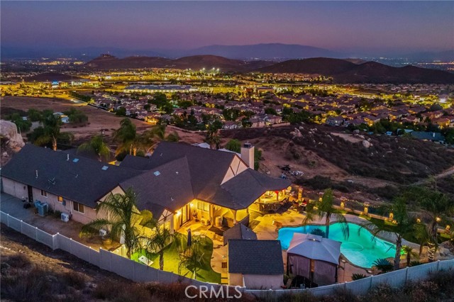 A Rare 5-Acre Estate — Unmatched Elegance & Opportunity Set amid the rolling hills of Murrieta, this ultra-private 5-acre estate stands as one of the region’s most distinctive and captivating offerings. Offering sweeping panoramic views in every direction, the property combines exceptional privacy with easy proximity to upscale shopping, dining, and freeway access. Designed for effortless luxury and unforgettable gatherings, the residence features a resort-inspired pool with slide, generous outdoor entertaining areas, and integrated solar power for exceptional energy efficiency. Every element has been thoughtfully crafted to elevate comfort, privacy, and style. With its remarkable setting, scale, and infrastructure, the estate invites a range of possibilities for the next owner’s enjoyment—whether as a serene personal residence or a venue for memorable occasions. Configured for flexible use, including short-term rental or private event potential (Buyer to verify all zoning, permitting, and city requirements). Seller currently has a short-term rental permit. Weddings require pre-approval from the City of Murrieta through a separate approval process, but the acreage may qualify if all city requirements are met. The interior offers versatile rooms than can serve as office, gym, or guest space, plus an attached casita with its own entrance. Buyer to verify all details, square footage, and intended use with appropriate agencies. Opportunities of this caliber—where lifestyle, craftsmanship, and natural beauty converge—are exceedingly rare.