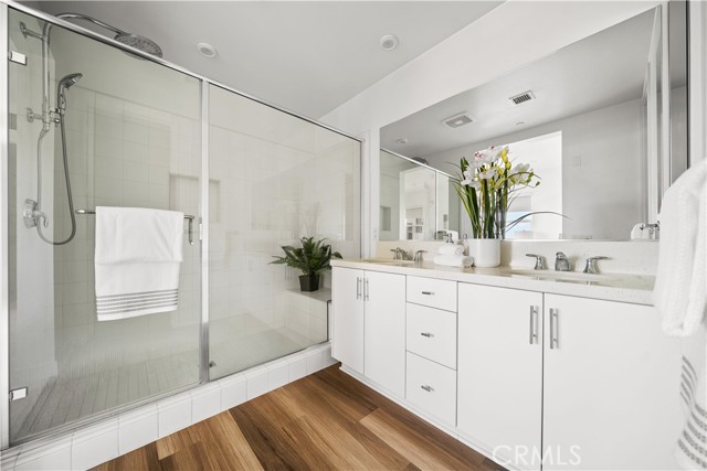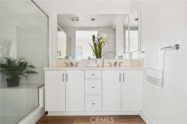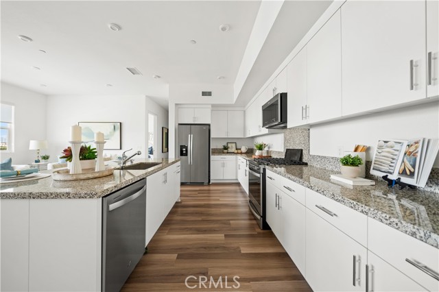 Located at 100 west Toll Brother Community and Unit is set behind a gated entry with an exclusive recreation center that features a pool, spa, and BBQs. Apartment with a 2-car attached garage, patio/balconies extend the interior living space on one level home and all two bedrooms with its own bathroom. Whole house upgraded with wood flooring, full back spalsh and shower tile. Enjoy nature and bike or hike your way to the coast along the Santa Ana River Trail which connects to Huntington Beach and Pier. Only five to ten mins drive to Anaheim Garden Walk, Old Towne Orange, Disneyland, The Honda Center, Angel Stadium. Great for Students who have a short commute to Chapman University, University of California Irvine, and California State University, Fullerton. Easy access to major freeways and the ARTIC station. Toll Brothers New Home you must see!
