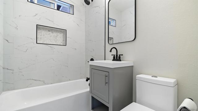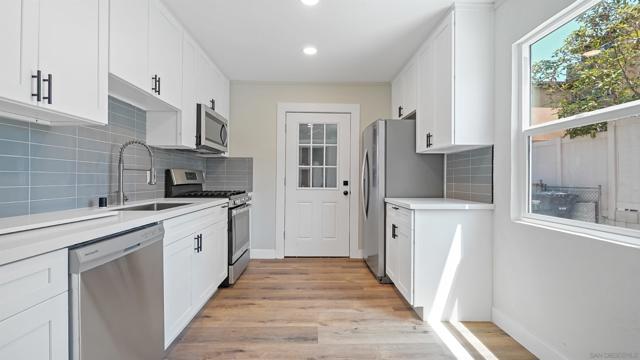 Turnkey, fully renovated tri-plex—two separate structures on a 7,405 sq ft lot in East National City. Front detached 3BD/2BA (~980 sq ft) with fully fenced front/back yards, separate primary bedroom with en-suite bath, full-size stackable laundry, and driveway parking. Rear duplex offers two mirrored 2BD/1BA (~711 sq ft each) units, each with its own utility room (newer water heater + stacked laundry), central HVAC, and private fenced yard. Separate SDG&E gas & electric meters per unit. Smart layout for owner-occupant + income or pure investment. Minutes to Downtown San Diego (~6 miles), Naval Base, I-5/I-805/SR-54, and trolley access. A clean, low-maintenance portfolio piece with strong tenant appeal and modern systems. Please do not disturb tenants.