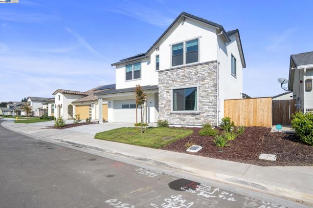Welcome home to this stunning brand-new build in North Modesto! Built in 2025, this 4-bedroom, 2.5-bath modern home -featuring nearly 2,500 sq. ft. of living space- offers comfort, efficiency, and style. The open-concept layout features all-electric appliances, an energy-efficient design, and fully OWNED SOLAR for long-term savings. The primary suite is conveniently located on the first floor -creating the perfect flow for families or multi-generational living. Upstairs, you’ll find spacious bedrooms and a versatile loft area ideal for work or play. Step outside to a professionally designed $30,000 backyard -with a large lawn -perfect for entertaining or relaxing under the California sun. With NO HOA, this move-in-ready home combines convenience and value. Located close to top-rated schools, parks, shopping (including Costco), and just 2.5 miles from Highway 99 for easy commuting. Don’t miss your chance to own this beautifully upgraded, energy-smart home in one of Modesto’s most desirable neighborhoods!