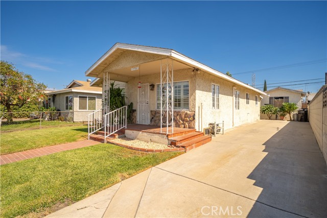 First time on the market since 1963, this unique property offers two detached single-family residences on one lot in the heart of Pico Rivera, ideal for multi-generational living or investment. The front home features three bedrooms and two bathrooms, including a primary suite with laminate flooring and a private bath. The living and dining areas are enhanced with hardwood flooring, fresh interior paint, plantation shutters, and ceiling fans in every bedroom and the family room. The spacious kitchen, remodeled approximately 10 years ago, offers granite countertops, recessed lighting, and abundant cabinetry. Both bathrooms have been recently remodeled, and convenient indoor laundry hookups are included. The rear home offers two bedrooms and one bathroom with an updated kitchen, remodeled bath, fresh paint throughout, and ceiling fans. A private outdoor storage shed provides additional convenience. The property is secured by fencing and a rolling gate with a long driveway that offers ample parking. Both homes are move-in ready and present a rare opportunity to own multiple units on one lot. Whether you are looking for rental income potential or a place to share with extended family, this property provides flexibility, comfort, and long-term value.