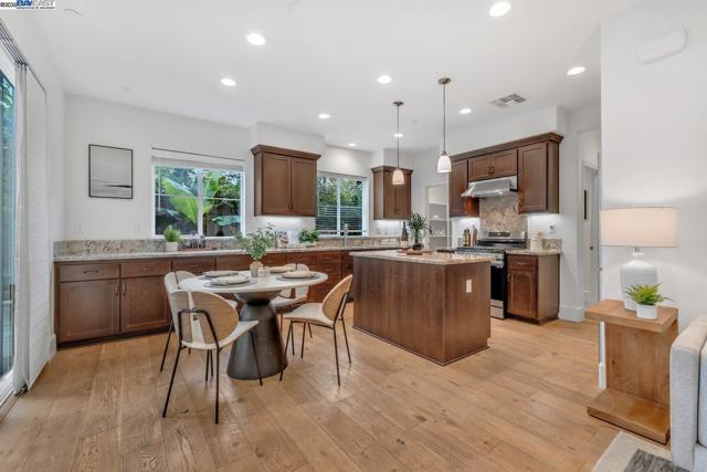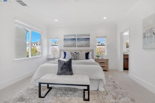 Beautiful and modern home featuring 4 bedrooms, 2.5 bathrooms, and approximately 2,041 square feet of living space. The functional floor plan includes a split 2-car garage with one driveway. Upgraded wood flooring and carpet flow throughout the home. The chef’s kitchen showcases an upgraded island, quartz countertops with backsplash, and premium stainless steel appliances. The spacious bonus room on the third floor offers a scenic view, covered deck, and is perfect for an office, media room, or entertaining—complete with projector and cinema hookups. The landscaped backyard includes a sprinkler system for easy maintenance. Located in the desirable Bayshores community near Facebook, Tesla, and other major employers, residents enjoy access to a private clubhouse, community park, and children’s playground. Nearby Don Edwards San Francisco Bay National Wildlife Refuge provides miles of scenic trails and open space to explore. Easy access to the Dumbarton Bridge and I-880 for convenient commuting.