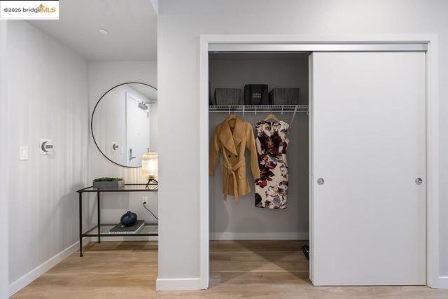 Now Selling at Caspian Brooklyn Basin. Discover modern waterside living in this thoughtfully designed JR 1-bedroom with a separate sleeping room, slider, and closet, 1-bathroom condo, spanning approximately 550 sq ft. Located in one of Oakland’s most exciting new communities, this home offers a rare chance to own in a vibrant, amenity-rich setting. The open layout features sleek finishes, a well-equipped kitchen with Samsung stainless steel appliances, quartz countertops, and modern cabinetry. High-efficiency dual-pane windows frame the bright living area, while the bathroom includes quartz counters and Grohe fixtures. Includes in-unit washer and dryer. Caspian residents enjoy a fitness center, a dedicated co-working space, landscaped courtyards, a game room, and rooftop lounges with panoramic views. Situated on Oakland’s revitalized waterfront at Brooklyn Basin, the community provides direct access to parks, dining, and recreation, with Jack London Square, BART, and ferry service to San Francisco just minutes away. Includes one parking space. All images are representative of the development and may be of a similar unit.