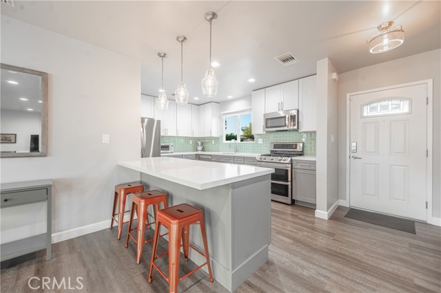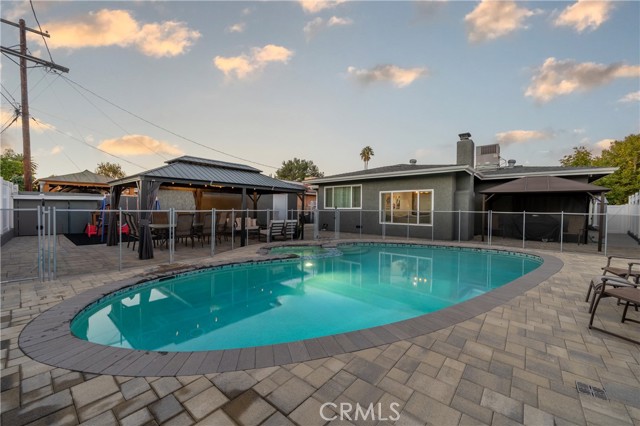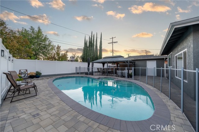 Welcome to Granada Hills living at its finest! This single story home is ready to go! The home has a 4 bedroom and 2 bathroom layout (4th bedroom is currently a dining room) with a fully remodeled kitchen with a window overlooking the mountain-scape, an oversized peninsula island (quartz countertops) providing ample prep, serving, and casual dining area! Newer flooring throughout the home which also boasts a formal dining room, a living room, and a bonus family rm that overlooks the pool. Both bathrooms have been fully updated with marble countertops! Numerous updates have been done with the HVAC replaced in 2019 (5 ton/16seer rated), copper repiping throughout in 2012, roof was estimated to be installed in 2014, Milgard dual pane windows installed in 2017, and a newer water heater! The property has an expansive layout with a completely remodeled landscape and hardscape including newer pavers, turf grass, oversized driveway and gated rear driveway that leads to the prized detached garage (potential ADU opportunity!). The pool along with the landscaping was completely redone within the last few years, an in ground jacuzzi added with the pool remodeled with pebble finish known to last decades. This is truly an entertainers delight and a private backyard oasis! Even more it is located within minutes of shopping at Target, Vons, local eateries, Friday night food trucks and quick access to the 118 freeway.