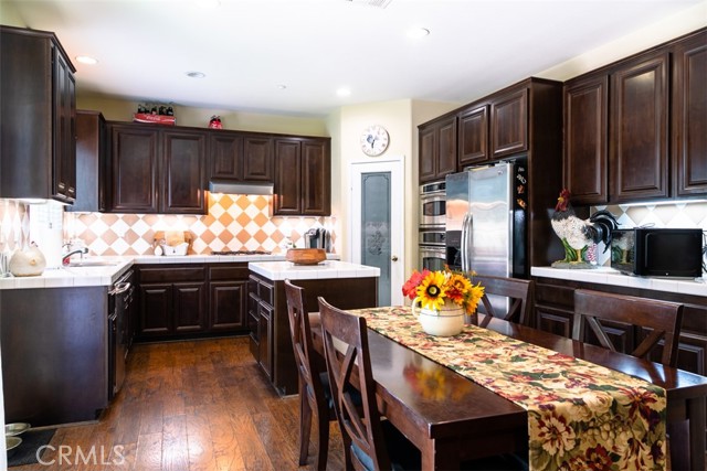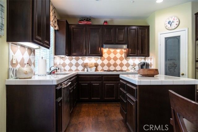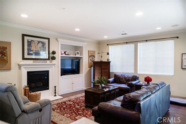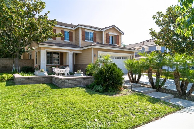 Former model home showcasing exceptional design, quality craftsmanship, and timeless style. This spacious two-story residence features 4 bedrooms, 3 bathrooms, and approximately 2,693 square feet of beautifully appointed living space filled with custom upgrades and designer finishes. Step inside and immediately feel the elevated touches that define a model home accent walls, crown molding, rich laminate wood-look flooring, and elegant wood shutters throughout. The inviting family room offers a warm gathering space centered around a fireplace with built-in TV cabinetry, creating the perfect atmosphere for relaxing or entertaining. The chef-inspired kitchen impresses with dark-wood cabinetry, a built-in range, generous counter space, and abundant storage, opening seamlessly to the dining and family areas for effortless flow. Upstairs, a spacious loft or den provides a versatile area ideal for a media room, play space, or home office. Retreat to the primary suite, a private haven featuring dual walk-in closets and a beautifully appointed ensuite bath. Every room reflects thoughtful design and attention to detail. Outside, enjoy the charm of lush greenery and upgraded model-home landscaping that enhances curb appeal and provides a peaceful outdoor setting. The covered patio and front porch offer perfect spots to sit, lounge, or entertain amid the serene surroundings. From its stylish interior upgrades to its beautifully landscaped exterior, this former model home blends elegance, comfort, and livability in one remarkable package a place where design and warmth come together to welcome you home.