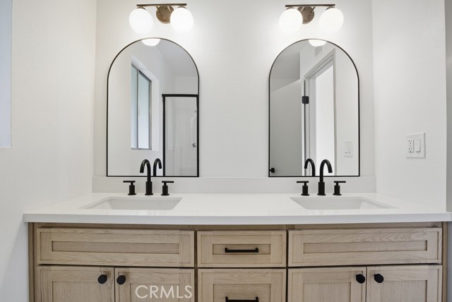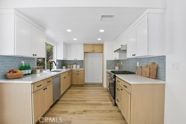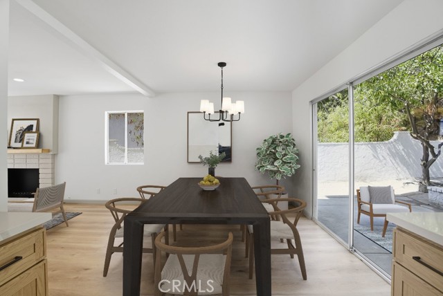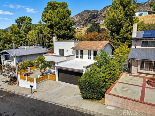 Welcome to this stunningly remodeled 4-bedroom, 3-bathroom home tucked away in one of Sylmar’s most desirable neighborhoods. Step inside and you’ll immediately notice how abundant natural light brightens every room, accentuating the fresh interior and exterior paint, new vinyl flooring, and stylish light fixtures throughout. The beautifully renovated kitchen showcases two-tone cabinetry, quartz countertops, a full tile backsplash, and brand-new appliances including a stove and dishwasher—perfect for cooking and entertaining. The main level features a formal living room with fireplace, a spacious dining area, and a kitchen that opens seamlessly to a private backyard and patio. A downstairs bedroom with full bath provides the ideal space for guests or extended family. Upstairs, three bedrooms await, including a primary suite with walk-in closet and an updated bathroom featuring new vanities, mirrors, tile floors, and fixtures. Another upstairs bedroom offers a private balcony with beautiful views, while the primary suite has the potential to extend onto a large patio to maximize outdoor living and mountain vistas. Additional highlights include new carpet upstairs, updated bathrooms with new toilets and fixtures, and new ceiling fans in every room. A two-car attached garage with washer/dryer hookups and central air conditioning adds convenience. Located on a quiet cul de sac street with mountain views, this property blends modern upgrades with a prime location—making it a truly special opportunity. Welcome home!