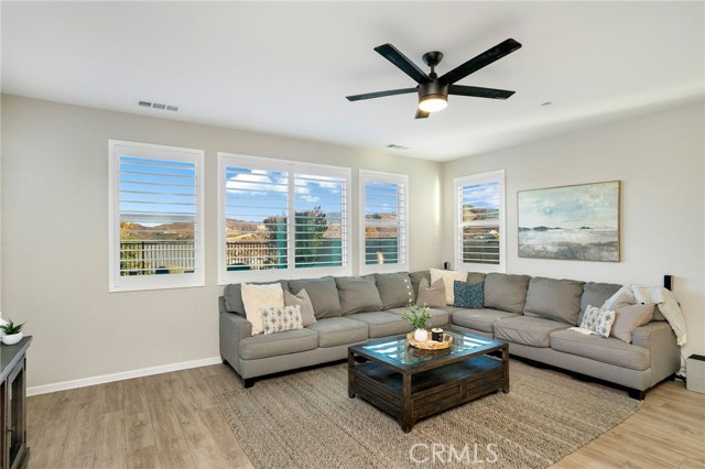 Steal This Home—Priced to Sell NOW! The lowest-priced home in Aliento—and it comes with unmatched panoramic views! Located in Santa Clarita’s coveted gated community of Aliento, this stunning 4-bedroom, 3-bath home offers the perfect blend of comfort, style, and convenience. Built just 7 years ago, this 2,650 sq. ft. residence is designed to take full advantage of its east-facing city and mountain views, keeping interiors bright yet cool throughout the day. The heart of the home—the open-concept Great Room and Chef’s Kitchen—flows effortlessly to the covered patio, where wood-look tile continues seamlessly outdoors for ideal indoor/outdoor entertaining. Enjoy thoughtful details throughout: a downstairs bedroom and bath for guests or multi-gen living, an upstairs loft with custom barn door, and plantation shutters and/or remote-control window coverings in every room. Outside, the backyard sparkles with bistro lights and breathtaking views, already plumbed for a future built-in kitchen and pool. The 5,778 sq. ft. lot is low-maintenance and ready for your vision. Just steps from the award-winning elementary school and Aliento’s resort-style amenities—clubhouse, gym, pool, splash pad, wading pool, hiking trails, and park—and only minutes to the new Trader Joe’s and freeway access. This is your chance to own one of Aliento’s best values—don’t wait! Homes like this don’t last.