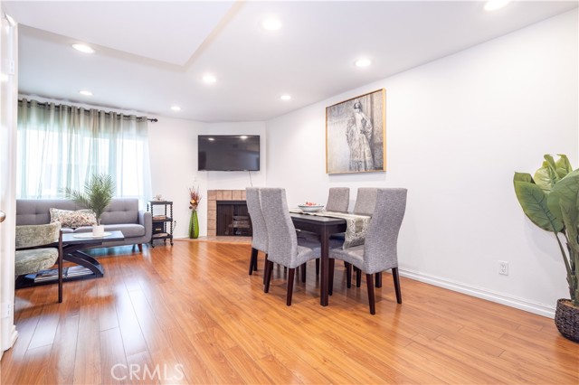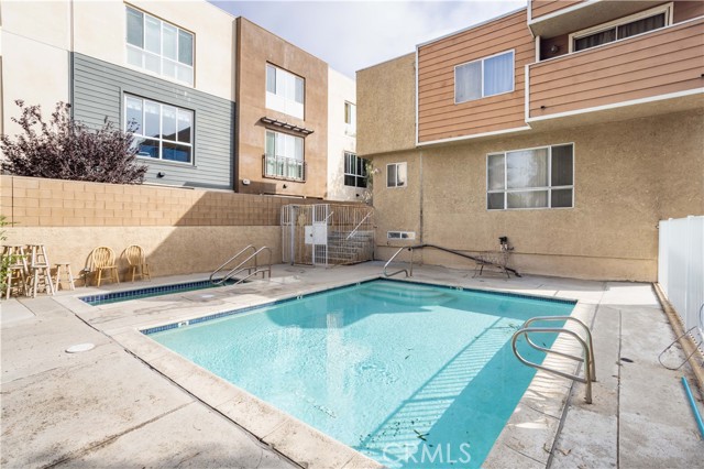 Welcome to this stylish and beautifully maintained townhome, offering resort-style living with a sparkling pool and spa, all within a highly desirable gated community in Van Nuys. This thoughtfully designed residence features two bedrooms and two and a half bathrooms across approximately 1,060 sq. ft. of comfortable living space. On the main level, you’ll appreciate direct access from the private two-car garage, a welcoming living room with a built-in display cabinet, attractive laminate flooring, a cozy gas fireplace, and powder room for your guests. The spacious dining area flows seamlessly into the bright and charming kitchen, which boasts generous cabinetry and counter space — perfect for both everyday living and entertaining. Upstairs, the primary suite is bright and airy, featuring a generous walk-in closet with a stylish barn-style door and an upgraded ensuite bathroom complete with a new vanity, soaking tub, elegant floor-to-ceiling tile, and all new fixtures. The secondary bedroom is equally inviting, offering mirrored closets and access to a nearby hallway bath showcasing a modern stall shower, updated vanity, and contemporary finishes. Additional highlights: optional third designated parking spot, all new vinyl windows, a new roof, laminate flooring throughout, and central heating and air conditioning for year-round comfort. Set within a well-maintained gated community, residents enjoy access to resort-style amenities including a sparkling pool, relaxing spa, and beautifully landscaped common areas. Ideally situated near popular dining, shopping, parks, schools, and with convenient 405 Freeway access, this townhome blends contemporary comfort with an unbeatable location — offering the perfect combination of style, privacy, and convenience.