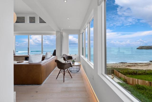 Experience The Landing, designed for those who break boundaries and seek inspiration at the waters edge. Discreetly positioned on one of Northern Californias most exclusive stretches of coastline where homes rarely become available, this modern beach sanctuary is just ten minutes from Santa Cruz's vibrant tech and surf scene, one hour from SFO, and literally steps from the Pacific. Legendary surf breaks flank both sides of your private backyard, making it effortless to slip out for a dawn session or host board meetings on the sand. Every room in this 5-bedroom, 4 full and 2 half-bath masterpiece is enveloped by panoramic ocean views and filled with the sounds of saltwater and wildlife. This timeless, whimsical state-of-the-art design features a walk-in pantry, climate-controlled wine wall, immersive home theater, radiant floors, and smart lighting with over 176 programmable options for every mood. The homes custom woodwork, made from reclaimed redwood, honors the past while curating an atmosphere of bold possibility. The expansive, modern kitchen and open living spaces are playgrounds for private indulgence or dynamic gatherings, while a Zen garden adds tranquility just steps from the surf. Approved plans included for a two+ car garage and artist loft above with ocean views.
