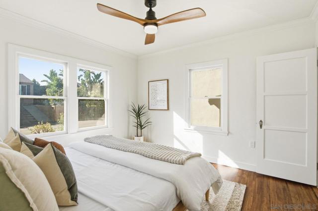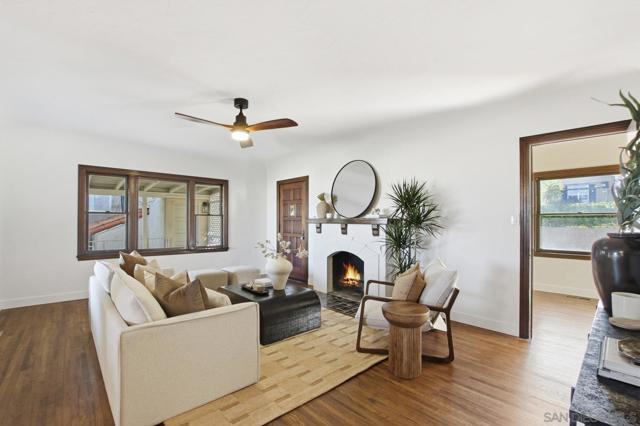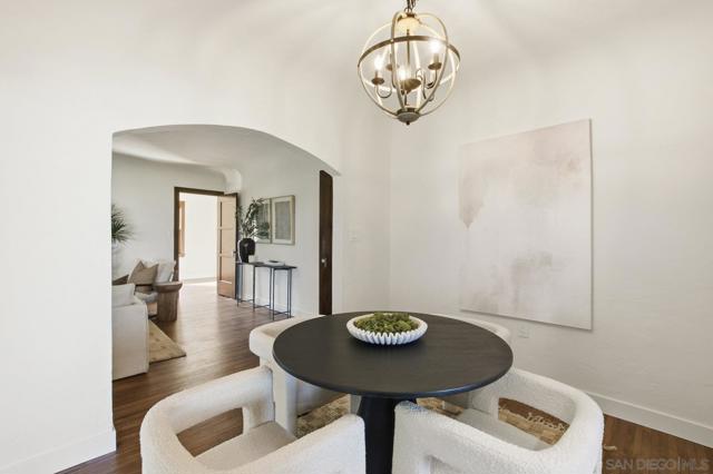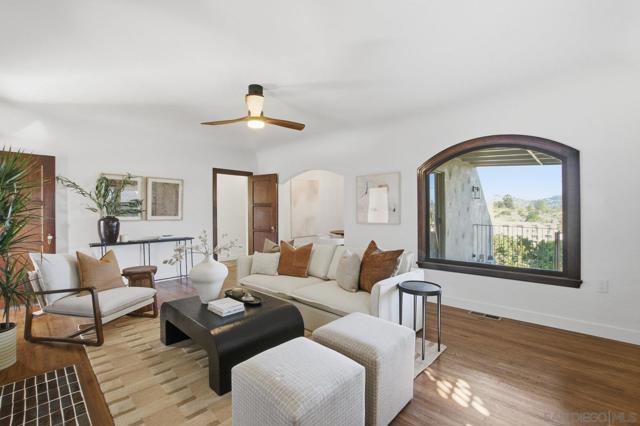 Spanish Charmer with Mountain Views in a Prestigious La Mesa Neighborhood! Perched atop El Capitan Hill and just minutes from La Mesa Village, this beautifully maintained Spanish-style home offers timeless character with modern updates. Enjoy sweeping mountain views and versatile bonus spaces perfect for today’s lifestyle. The main level features 3 bedrooms and 2 baths, showcasing refinished original hardwood floors, fresh interior and exterior paint, all-new stucco, and updated recessed lighting. The spacious living room includes a wood-burning fireplace, while the dining area opens to a large covered patio ideal for entertaining or relaxing with a view. Downstairs, you’ll find two versatile bonus rooms and a half bath—perfect for a home office, gym, playroom, or creative studio. Both bonus rooms feature new pine-colored luxury vinyl plank flooring. The backyard includes mature landscaping, a walkway leading to an additional storage area, and ample potential to customize or expand the outdoor living space. A detached garage and generous parking complete this exceptional property. Experience the best of La Mesa living in a highly sought-after neighborhood known for its charm, views, and proximity to shopping, dining, and recreation. Note: new French doors are being installed this week from the dining room to the patio