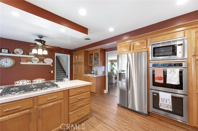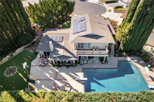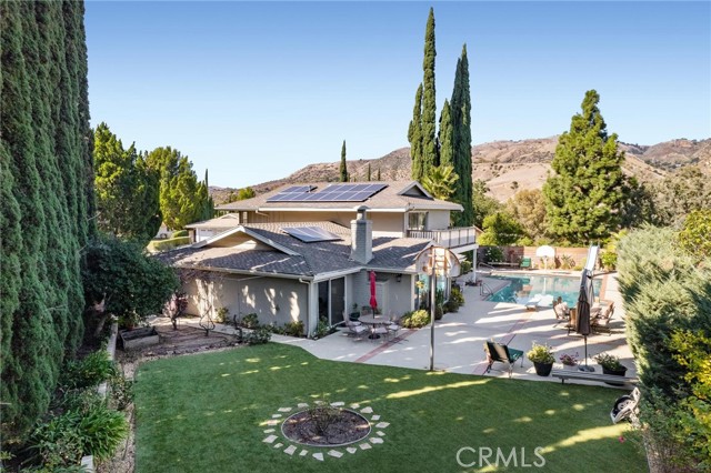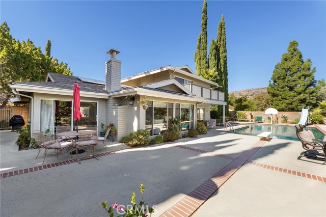 Welcome to 12110 Braemore Place, a beautifully updated home ideally situated on a cul-de-sac north of Rinaldi in the highly desirable Porter Ranch community. This inviting 3-bedroom, 3-bathroom residence blends modern upgrades with exceptional comfort and space, perfect for both everyday living and entertaining. Step inside to discover a remodeled eat-in kitchen featuring stunning quartzite countertops, stainless steel appliances, and abundant cabinetry. A formal dining room opens to a spacious family room with a cozy fireplace, while a separate downstairs den offers flexibility as a home office, playroom, or easily converted 4th bedroom. Upstairs, the primary suite offers two closets, an en suite bathroom with an updated double-sink vanity and large walk-in shower, along with a private balcony showcasing serene mountain views. Enjoy the ultimate backyard retreat—one of the largest lots in the neighborhood—with a generous grassy area, oversized pool, basketball court, and fruit trees, creating the perfect setting for gatherings and outdoor fun. Additional highlights include a 3-car garage, newer A/C system, plantation shutters, sewer sub-meter, Moen leak detector, and fully paid solar panels for energy efficiency. Conveniently located near The Vineyards at Porter Ranch, offering top dining, shopping, and entertainment, and within the highly sought-after Granada Hills Charter High School district—this home perfectly combines comfort, function, and lifestyle in one of Porter Ranch’s most desirable pockets.