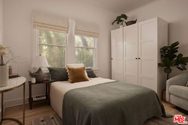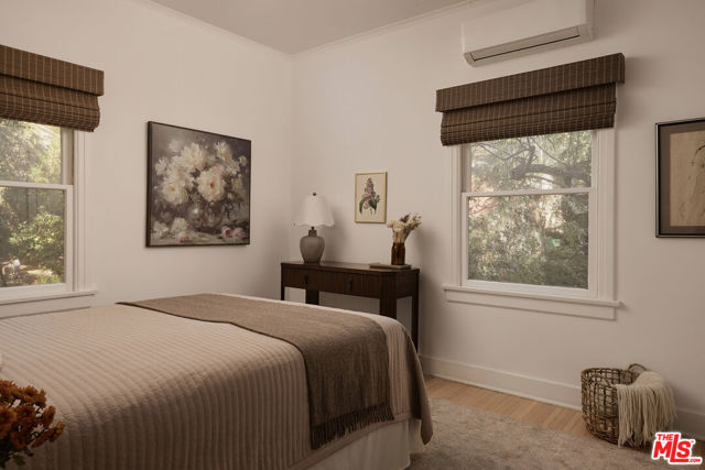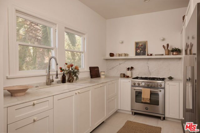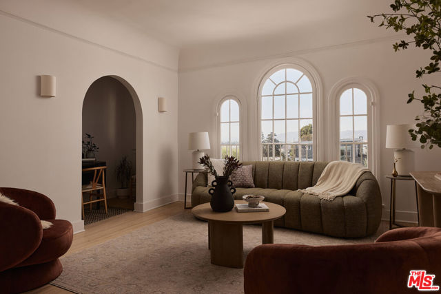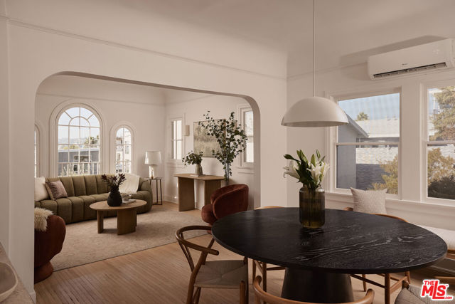 Originally built in 1926, this quartet of Spanish homes encompasses many of the eastside's most desirable traits. 854 1/2 Hyperion Ave is rich with character while being thoughtfully updated with timeless finishes and luxe details. Coved ceilings and curved archways capture the light in this turnkey jewel box. The original oak floors have been refinished and lightened, and the kitchen boasts honed marble counters, custom built-in shelves, a Fisher & Paykel fridge, and a Bertazzoni range. At dusk, the trio of arched windows in the living room fill the space with a golden glow, showing off northwest-facing views of the Hollywood Hills. In addition to the home's two spacious bedrooms, a cozy nook off the living room is the perfect spot for reading, writing, or a petite office space. A mini-split system for heating and cooling and a dedicated laundry room are added conveniences. 854 1/2 Hyperion Ave is just a couple of blocks from both Sunset Junction and Virgil Village, putting you right in the center of so many of LA's most beloved haunts, including The Black Cat, Millie's, La Colombe, Courage Bagels, Budonoki, Real Charmer, and many more.