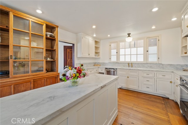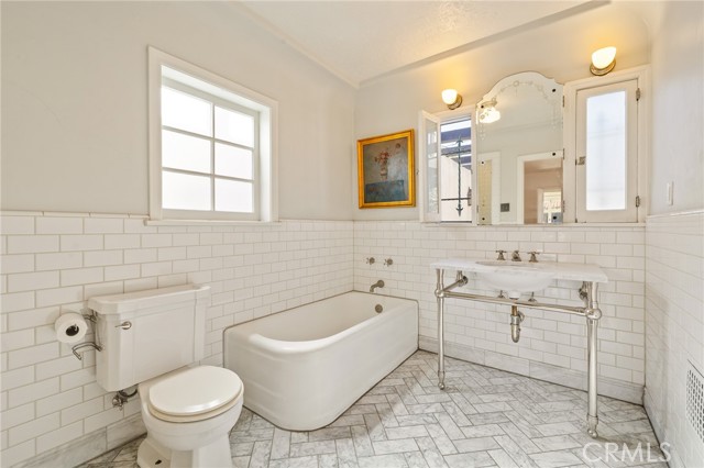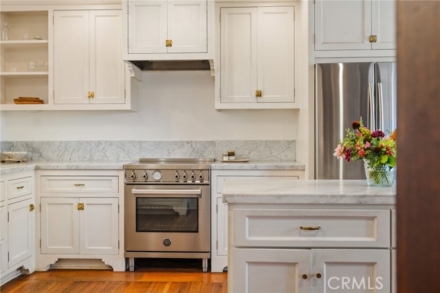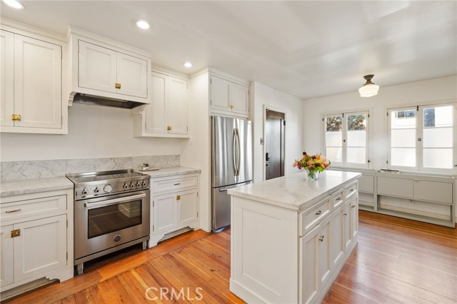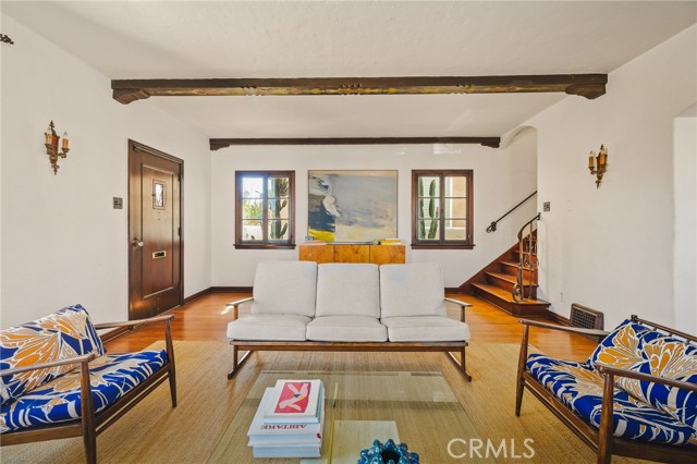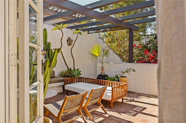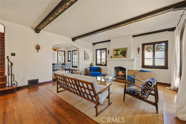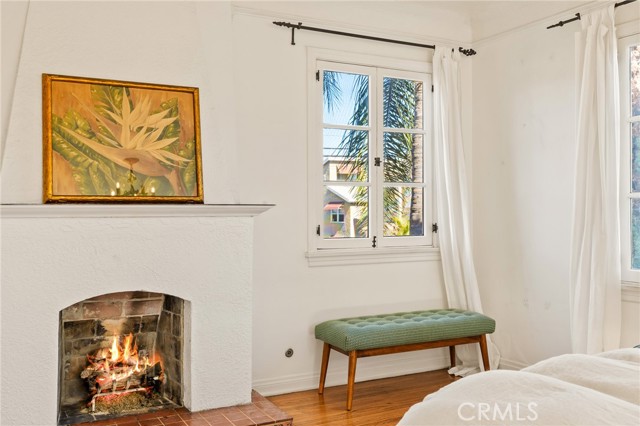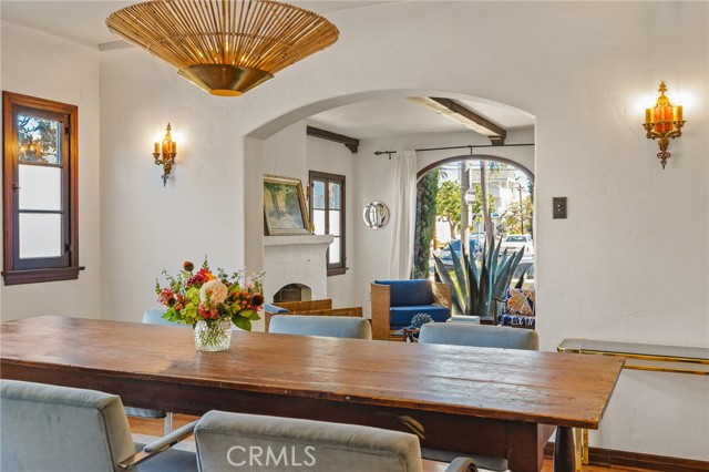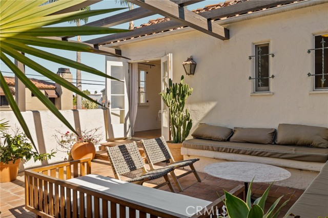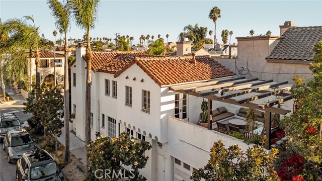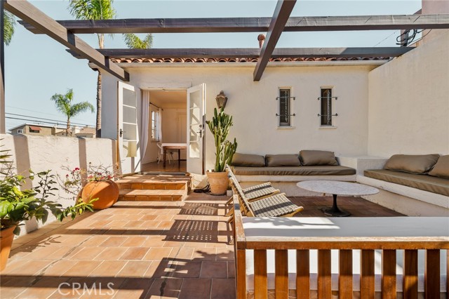 Character, charm, coastline. Just steps from the sand and the heart of Belmont Shore, this Spanish-style sanctuary delivers the quintessential Southern California dream. This timeless home will enchant you at first glance with its white stucco facade, terracotta roof, corner lot, and private walled courtyard filled with succulents and Mediterranean landscaping. Enter a sunlit living room where hand-painted wooden ceiling beams rise overhead and an arched picture window floods the space with natural light. Historic architectural details blend seamlessly with modern luxury. The remodeled gourmet kitchen is a chef's delight, featuring marble countertops, a Bertazzoni induction range, a brand-new refrigerator, and custom cabinetry. An original wrought-iron railing leads to the second level, where spacious, light-filled bedrooms await. The primary suite offers a peaceful retreat with its classic corner fireplace, gleaming hardwood floors, and windows that capture the coastal glow. A second gas fireplace anchors the main living space. Both chimneys have been recently serviced and restored for efficiency. Vintage charm meets modern refinement in the stylishly updated bathrooms, featuring pedestal sinks, classic subway tile, and elegant marble herringbone floors that honor the home's 1920s heritage. Beyond its timeless appeal, this home has been thoughtfully upgraded with a seismically retrofitted foundation, professionally bolted and braced to current standards, providing both peace of mind and lasting structural integrity. The crown jewel? An expansive rooftop deck with Spanish tile flooring, built-in bench seating, and a wood pergola overhead. This idyllic outdoor living space is perfect for sunset gatherings or simply soaking up the California sun with ocean breezes blocks away. Walk to the beach in minutes. Stroll to the boutiques, cafes, and restaurants of lively 2nd Street. Paddleboard in Alamitos Bay. This is coastal living at its finest.