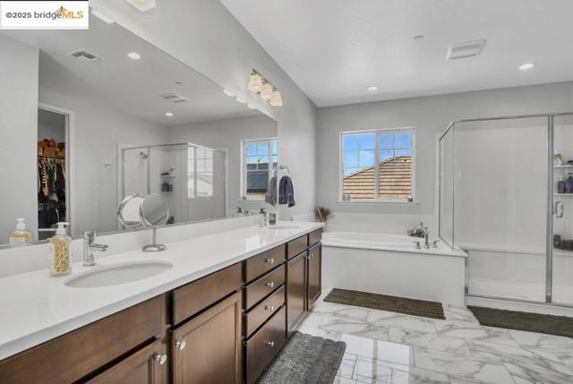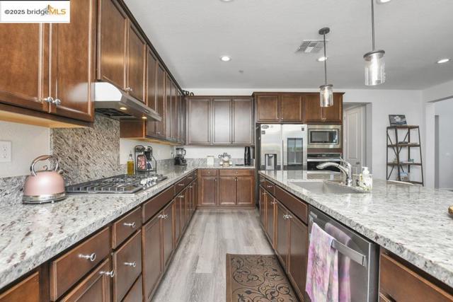 Did you say OWNED SOLAR and NO HOA? Yes, I DID! Welcome home to this beautiful, bright and well-designed floorplan by Brookfield Residential! A wide, elegant entry way and breathtaking, sky-high ceilings greet you as you walk through the front door. Chef's kitchen with Whirlpool stainless appliances, Family-Hub Refrigerator, gorgeous slab granite countertops and gourmet island with not one, but TWO pantries make meal prep a joy! Multigenerational suite downstairs. Master suite boasts a massive walk-in closet, spa-like bathroom with double sinks, expansive mirrors, deep oval soaking tub, separate glass-enclosed shower with integrated bench seating! Enjoy your cozy fireplace on chilly days and your huge loft for memorable movie and game nights! Luxury vinyl plank flooring and carpeted bedrooms allow for an upscale, yet inviting, appeal. The California Room upgrade in your spacious backyard allows you to entertain and relax in your personal oasis. Landscaped, low-maintenance front yard completes the perfect package! Neighborhood lakes, baseball diamonds, basketball courts, picnic areas and playgrounds. VETERANS - Don't miss your chance to assume this 2.75% VA interest rate! Close to schools, shopping, restaurants, and highways for easy commuting