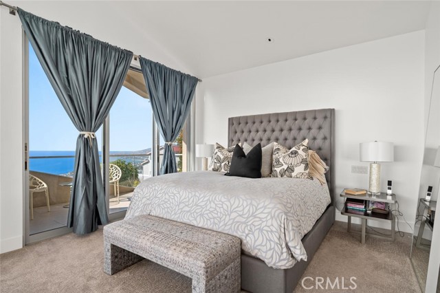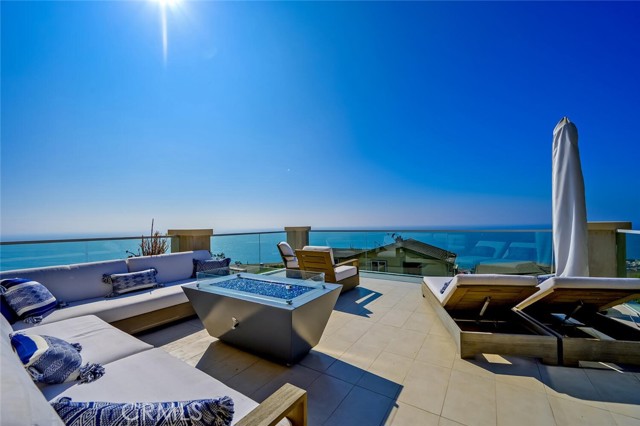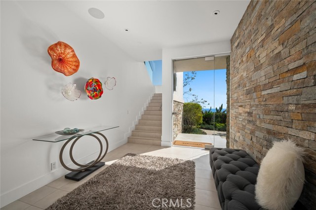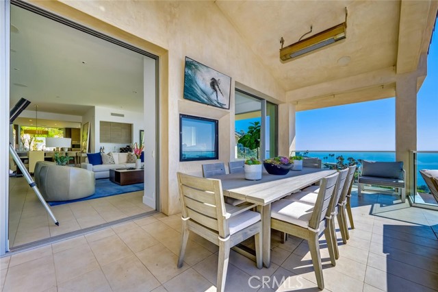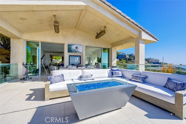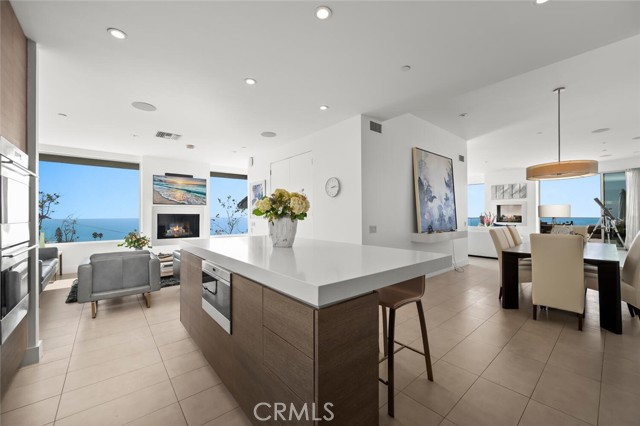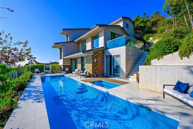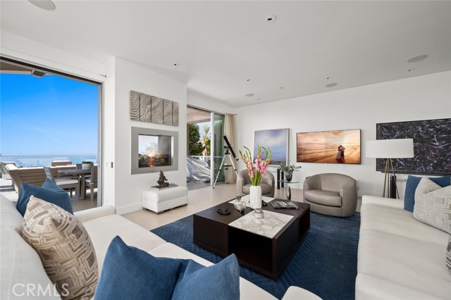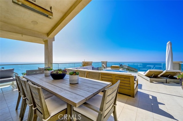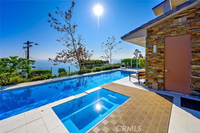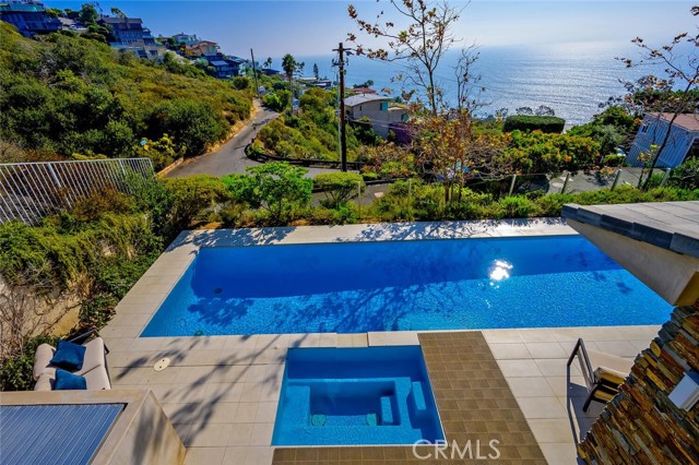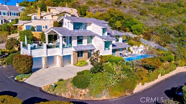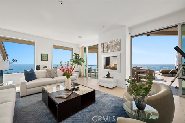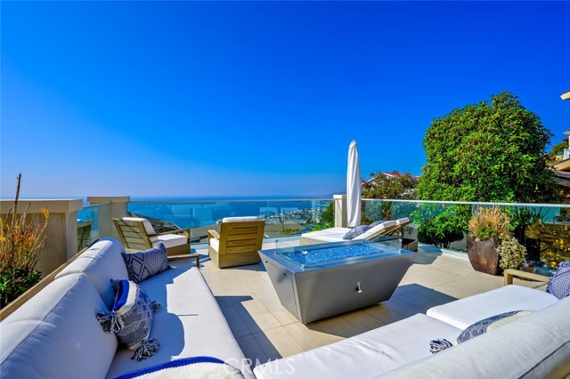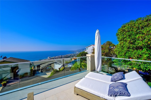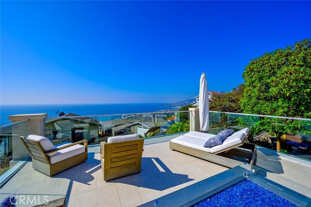 Breathtaking views with sunsets over Catalina Island to glittering city lights and sweeping whitewater views, this custom soft-contemporary residence captures the very best of Laguna Beach living. Showcasing dramatic ocean panoramas from nearly every room and terrace. Thoughtfully crafted for both grand entertaining and intimate relaxation, the home’s outdoor spaces include multiple ocean-view decks, a spacious terrace with a saltwater pool and spa, an expansive patio extending from the great room, and a private balcony off the primary suite—each offering an unforgettable coastal backdrop. A frameless glass entry door introduces a sophisticated interior, encompassing four bedrooms and four and a half baths, a striking stone-accented foyer, with high ceilings, floor-to-ceiling windows, whole-house audio, and three fireplaces create an atmosphere of modern refinement and effortless elegance. Designed by award-winning architect Joseph Ambrose, the residence exemplifies impeccable craftsmanship and timeless contemporary design. The main entertainment level centers around a dramatic great room and a sleek chef’s kitchen appointed with custom European-style cabinetry, a waterfall island with bar seating, stone surfaces with full-height backsplash, and professional-grade stainless-steel appliances including a built-in refrigerator and 6-burner cooktop. The ocean-view primary suite is a private retreat unto itself, offering vaulted ceilings, dual custom closets, and a spa-inspired bath with a soaking tub and oversized shower—an idyllic sanctuary where modern luxury meets coastal tranquility.