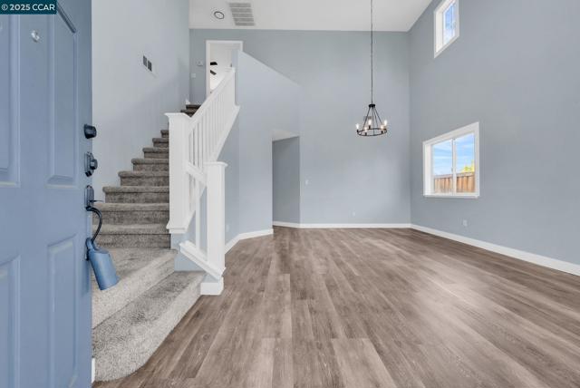 Quiet street with no rear neighbors! Vaulted ceilings and abundant natural light greet you as you enter this beautifully updated 2-story, 4-bedroom, 2.5-bath home. Every detail has been refreshed, including all-new exterior and interior paint, plush carpet, luxury vinyl plank flooring, modern light fixtures, outlets and switches, and sleek recessed lighting. The kitchen shines with a brand-new oven featuring a built-in air fryer—perfect for easy weeknight dinners or hosting friends. Both bathrooms have been stylishly remodeled with fresh finishes, new vanities, and updated fixtures. The spacious primary suite boasts vaulted ceilings and a breathtaking view of Mount Diablo, creating the perfect spot to unwind. Enjoy cozy evenings by the wood-burning fireplace in the family room or step through French doors to the pergola-covered patio, ideal for outdoor dining and gatherings. Large backyard offers room to play, garden, or entertain, large side yard access for an RV, trailer, jet skis, or boat. Located in a peaceful, well-kept community close to scenic waterways, marinas, parks, and trails, this home offers the perfect balance of relaxation and recreation. Move-in ready and designed for today’s lifestyle—come experience it for yourself!