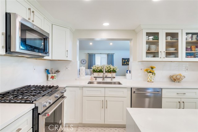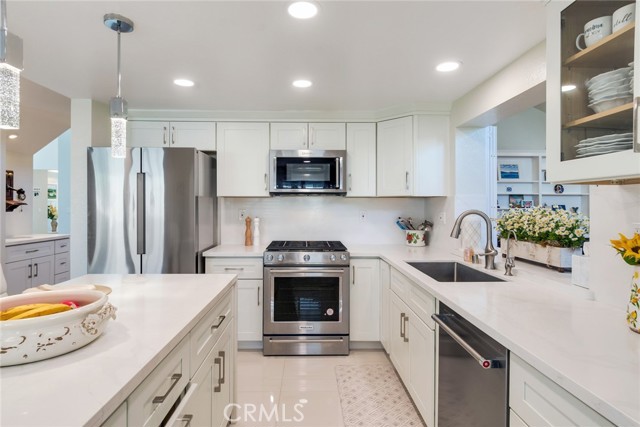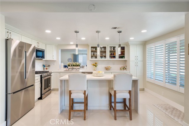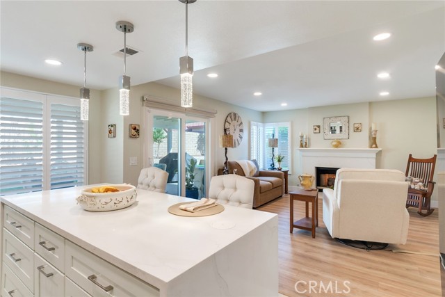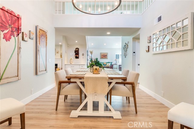 Beautifully upgraded modern residence located in the Mission Grove neighborhood of Riverside. Don't miss out on this 4 bedroom 3 bathroom home (1 bedroom and bathroom with shower located downstairsl)! Walk in and enjoy the openness of high ceilings, recessed lighting, shutters with plenty of windows for that natural light, and newer vinyl flooring for easy cleaning and durability. Elegant formal dining area that leads through to a huge family room with dual sliding doors that lead to the backyard! Great home for entertaining. The kitchen features stunning quartz countertops, with white shaker cabinets; upgraded appliances, and even a pop up device in center island for all your electronics. Off kitchen another family room with a cozy fireplace, and sliding door that leads to the elegant outdoor space. New split face block wall in backyard and side yard, new sod and sprinkler system added in backyard, new circuit breaker, new sound proof windows upstairs, new shutters, new front door and hardware, new HVAC energy efficient 17 Seer variable speed 2 fan condenser, new duct work in attic, new silent system garage door openers, resurfaced deck off upstairs bedroom, new outside lighting. Bring your fussiest buyer ~ Prime location, Culdesac, 3 car garage, close to shopping, parks, schools!