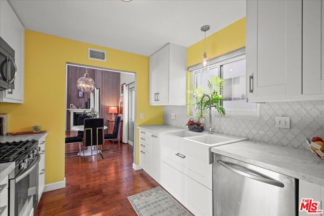 A Harmonious blend of Style and Comfort in this remodeled, Turnkey 1 bedroom plus Loft with a Private Rooftop Deck home in the best part of Studio City. Located on the Top Floor and in the rear portion of the building this perfectly situated Contemporary with Architectural design elements and European flair is truly a special place to spend time. The commanding space is graced with 17 ' high ceilings and oversized windows ushering in natural light creating an eclectic and energizing creative space while providing a serene respite from the burgeoning neighborhood surround. The main level consists of a comfortable living room, a dining area that plays to an expansive balcony, gorgeous remodeled gourmet kitchen, a designer done bathroom, and primary bedroom with walk-in closet. The upper level provides a loft space that can be used as a second bedroom/office/den/artist retreat and private rooftop deck for sunbathing, yoga, and private moments. The new windows & doors, newer HVAC system, and overall pristine conditions combine to provide the next owner a move in ready oasis. 2 car parking, additional assigned storage, washer dryer hookups in unit complete this showcase of a home: truly a special place to spend time. At your doorstep you will find Equinox, Erewhon, all the wonderful shops and restaurants of Sportsman Lodge and Ventura Blvd...Come and see this special offering.