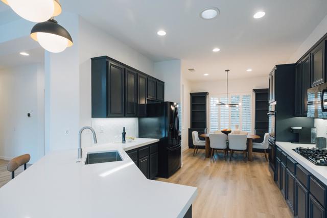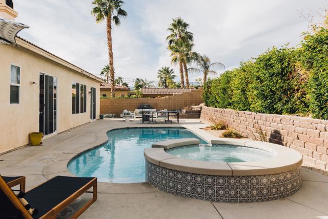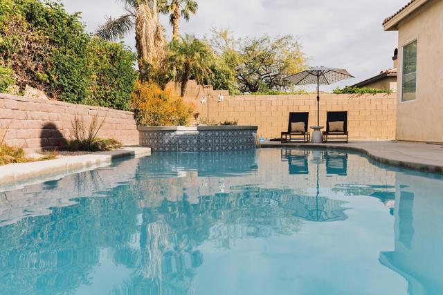 Discover this 2,350 sq. ft. residence in the sought-after gated community of Esplanade, offering a blend of modern design, flexible space, and resort-style amenities. With 5 bedrooms (including a versatile den that can easily be enclosed), this property adapts easily to a variety of living or investment needs.Inside, high ceilings and updated flooring create an inviting sense of space. The kitchen features sleek quartz countertops, ample cabinetry, and seamless flow into the open-concept living area designed for comfort and entertaining. The layout includes an expansive primary suite, a secondary en-suite bedroom, and two additional guest bedrooms that share a convenient access to a full hall bath.Step into the private backyard retreat with a newer pool and spa surrounded by mature landscaping, perfect for relaxing or hosting under the desert sky.Low HOA dues of $205/month include cable, Wi-Fi, gated security, and access to a community park. Optional furnishings are available for purchase outside escrow, making this a ready-to-enjoy or turn-key investment opportunity.