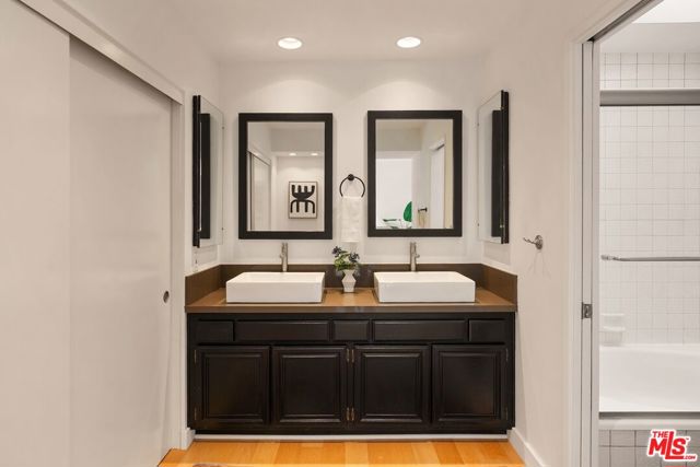 Located in the heart of West Los Angeles' Sawtelle neighborhood, this contemporary townhome combines modern design with everyday livability. The residence offers three bedrooms plus a loft, a private rooftop terrace, and a ground-level patio within one of the area's most desirable gated communities. The main level features maple hardwood floors, an open living and dining area with a sleek decorative fireplace, and a kitchen finished with quartz countertops, stainless-steel appliances, and patio views perfect for entertaining or daily use. A custom built-in bookcase adds storage and character. Upstairs, the primary suite impresses with 20-foot cathedral ceilings, floor-to-ceiling windows, and a spacious en-suite bath. Two additional bedrooms provide flexibility for guests or a home office, while the loft opens to a private rooftop terrace with synthetic turf and sweeping city and mountain views. The private two-car garage includes epoxy flooring, abundant storage, and a large laundry area. Notable updates include full patio waterproofing with designer tile, new maple flooring, a high-efficiency HVAC heat pump with iWave air cleaner, upgraded copper main hot water line, and enhanced lighting and plumbing fixtures. Conveniently located near Sawtelle's restaurants, cafes, and shops, as well as the Metro and major freeways, this home offers a rare blend of privacy, style, and access - ideal for those seeking turnkey living in one of West LA's most connected neighborhoods.