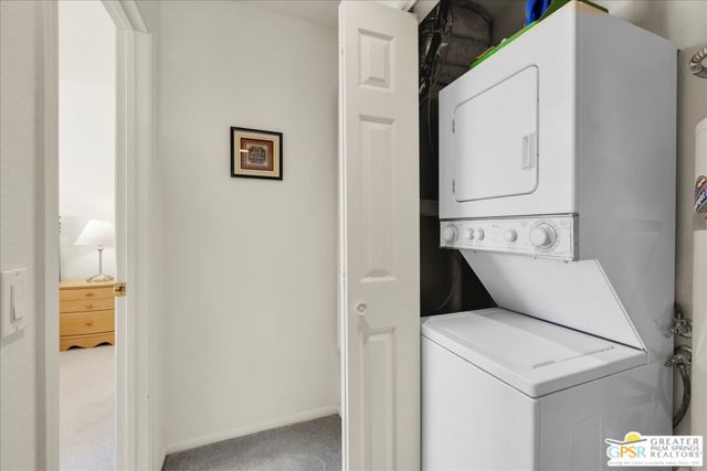 Discover the ultimate Palm Springs lifestyle in this spacious, turnkey furnished 2-bedroom, 2-bath upper-level condo the largest floor plan in the highly sought-after La Palme community in Central Palm Springs! This light-filled residence features high ceilings and two primary suites, each with its own en-suite bath and dual vanities a highly desirable setup for guests or shared living. The well-designed kitchen offers generous cabinet space and opens seamlessly to the dining area, ideal for entertaining. From the living room or one of the bedrooms, step out onto the expansive balcony to take in breathtaking mountain views and the serenity of lush landscaped surroundings. Additional highlights include in-unit laundry and an assigned covered parking space for convenience. La Palme is a beautifully maintained, smoke-free community offering resort-style amenities 6 sparkling pools, 6 spas, 3 tennis courts, and peaceful walking paths. HOA fees include water, trash, basic cable with HBO, WiFi, roof maintenance, and access to two electric car charging stations providing exceptional value and ease of ownership. Ideally located in the heart of Palm Springs, just minutes from downtown shops and restaurants, the Convention Center, Spa Casino, and the airport. Competitively priced and well maintained, this inviting condo offers everything you need whether as a full-time residence, seasonal retreat, or investment property. Plus, the acclaimed Sec-he Spa, ranked the #2 best day spa in California and featuring Agua Caliente hot mineral springs, is just a few blocks away, the perfect place to relax and rejuvenate in true Palm Springs style.