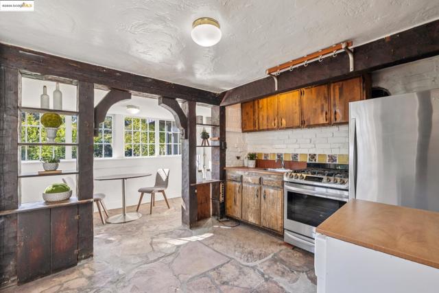 Nestled in a serene hillside, this rare Lincoln Heights gem offers unmatched privacy amid lush greenery & mature trees. The expansive lot presents endless possibilities, from creating your dream retreat to exploring SB9 & development opportunities. The charming two-story home features 1Bd/1Ba, filled with natural light & timeless character. The open-concept living room showcases hardwood floors, colonial grid windows & a cozy fireplace. Victorian-era glass pocket doors open to the formal dining room with built-ins & tranquil views, perfect for dinner parties or intimate gatherings. Downstairs, discover a hidden sanctuary with a kitchen that highlights Early American craftsmanship, hand-hewn beams & a cozy breakfast nook ideal for morning coffee & birdsong. The property also includes an attached garage, full-size washer/dryer & two Tuff-Sheds for storage. Outdoors, the expansive lot feels like your own private park, ideal for gardening, or potential expansion. Whether you envision building your dream home, ADU, or pursuing an SB9 lot split, this property offers exceptional flexibility, subject to local permit & planning. Minutes from Joaquin Regional Park, Robert Regional Recreation Area, Hwy 13 & Montclair Village, experience peaceful hillside living with city convenience.