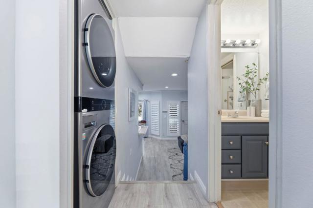 Wow! Introducing a Super Cute 2 bed, 1 bath bottom floor at Kenwood/Crosspointe HOA! The front patio overlooks a restful, large greenbelt. This serene setting is perfect to sit out on the patio for a Family BBQ or simply for relaxing. Convenient In-unit laundry. Kenwood/Crosspointe HOA is an ideal commuter location, close to freeways 87, 101 & 280/680, VTA and CalTrain Stations. Located minutes to the Plant Shopping Center, Grocery, Costco, Parks and more! Lot of Parks with play structures in the complex & swimming pool. This unit has recessed lighting, newer floors, window shutters, mini splits, appliances. Included is a 2-car tandem garage under the unit. Other permitted spots available outside (contact the HOA for details). Low HOA dues of $430 per month with water and garbage included. FHA Approved Complex. A must see!! Hurry, this home will not last!