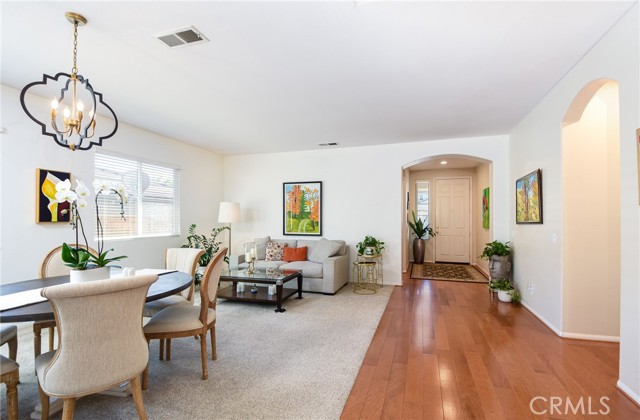 Stunning Pool Home in Temeku Hills! Welcome to this gorgeous turnkey two-story home with amazing curb appeal featuring a custom paver brick driveway, steps, and courtyard entry. Inside, enjoy newer carpeting, beautiful hickory hardwood flooring, and fresh neutral paint throughout. The highly desirable floor plan offers flexible living spaces, including a downstairs primary suite with a spa-inspired remodeled bathroom featuring travertine tile, a soaking tub, separate shower, walk-in closet, and private backyard access. The open, spacious kitchen is an entertainer’s dream complete with a center island with bar seating, walk-in pantry, butler’s pantry, built-in desk, and newer built-in appliances. A private downstairs bedroom and full bath make an ideal guest room or home office. House also includes a whole house fan to help keep cooling costs down. Upstairs, you’ll find a large loft/bonus room, two additional bedrooms, and a full bath. Step outside to your custom-designed backyard oasis a private, tranquil retreat featuring an in-ground pool and spa with solar heating, outdoor gas fireplace, covered patio with misting system, and lush mature landscaping. Located in the sought-after Temeku Hills community, residents enjoy access to an 18-hole golf course, clubhouse, resort-style pool, playgrounds, sports park, and fitness center all with low taxes and low HOA fees! Perfectly situated in the heart of town, close to shopping, dining, freeway access, and Temecula Wine Country.