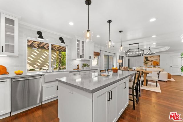 This storybook Chandler Estates residence embodies timeless California living with its graceful charm, quality craftsmanship, and modern comfort. Set on a beautifully landscaped 9,600 square foot lot with over seventy feet of frontage, it is framed by mature trees and a lush front garden that create a sense of privacy and warmth from the moment you arrive. Inside, the single-level floor plan offers effortless flow from the chef's kitchen to the dining and living areas, all filled with natural light and thoughtful design. The kitchen is a true centerpiece with custom cabinetry, quartz countertops, and premium appliances including a Wolf range, Bosch dishwasher, and LG refrigerator, ideal for both everyday use and entertaining. The primary suite serves as a peaceful retreat with a spa-inspired bath featuring dual vanities, a soaking tub, a frameless glass shower, and a generous walk-in closet. Two additional bathrooms have been elegantly updated with designer finishes. Interior highlights include crown molding, recessed lighting, fresh designer paint, and dual-pane Pella windows that bring in the beauty of the outdoors. Sliding doors open to a private backyard oasis with a deck off the dining room, a sparkling saltwater pool, and a spacious grassy yard surrounded by mature landscaping and blooming gardens. Thoughtful upgrades include owned solar, a newer roof, updated electrical systems, a replaced sewer line and main tie-in, two tankless water heaters, and central heating and air conditioning. With a two-car garage and extended driveway parking, this home sits proudly on one of the most picturesque, tree-lined streets in Chandler Estates, offering a rare blend of character, comfort, and sophistication.