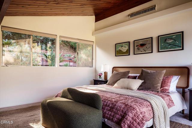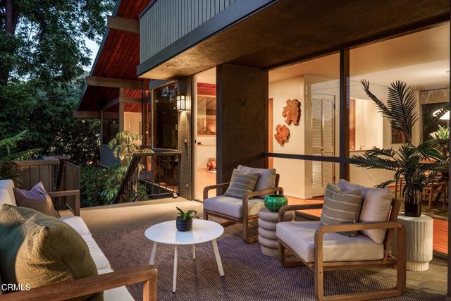 Set behind gates within an exclusive lakeside community, this striking post-and-beam mid-century modern residence offers rare privacy, serenity, and access to a private lake with a pool, park, and recreation area.Featuring 4 bedrooms and 4.5 bathrooms, the home is defined by its vaulted ceilings, floor-to-ceiling windows, and organic wood cladding that blend timeless architectural design with the surrounding natural landscape. The interiors invite light and views from every angle, creating a seamless connection between indoors and out.A newly remodeled kitchen anchors the main living space--perfectly designed for both daily living and entertaining. The expansive primary suite features an updated bathroom and direct access to the outdoors, while three additional en suite bedrooms each offer comfort and privacy for family or guests.The wrap-around patio overlooks tranquil lake views, ideal for morning coffee, sunset gatherings, or quiet reflection.Located in one of Pasadena's most sought-after gated enclaves, this exceptional home offers the feeling of being immersed in nature--yet just moments from the city's vibrant cultural and dining destinations. A rare opportunity to live in a setting that is private, secure and profoundly connected to its natural surroundings.