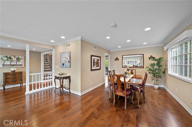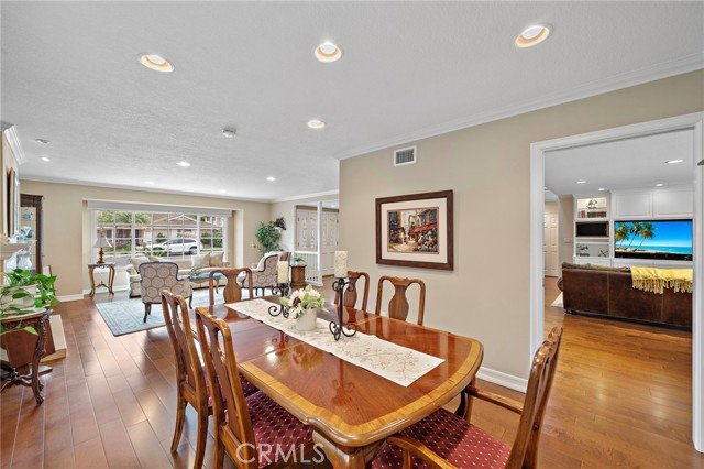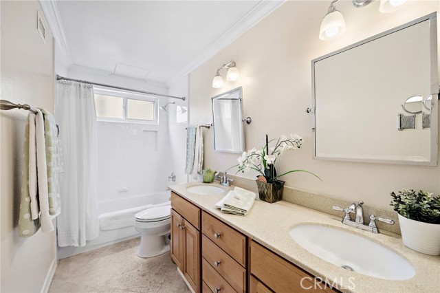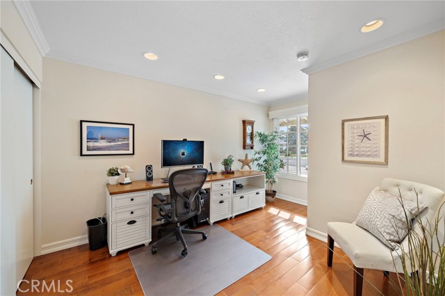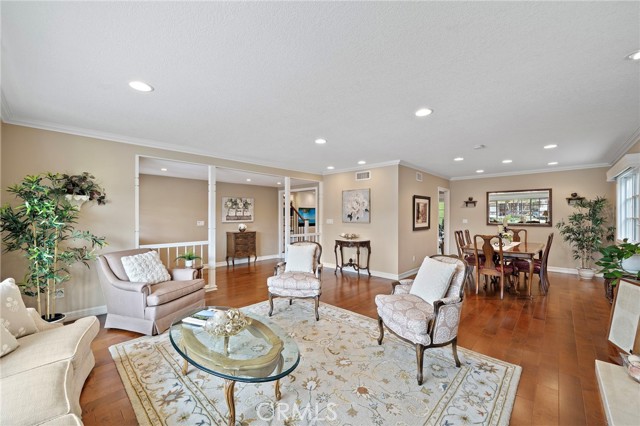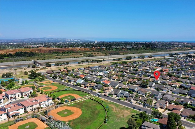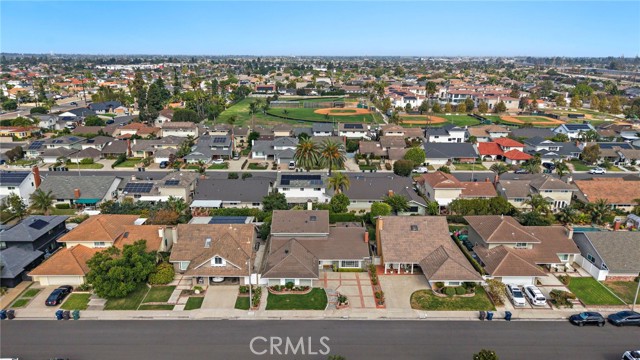 Located Just Moments From The Neighborhood Park And Bike Trail, This Stunning Residence Offers 5 Bedrooms, 3 Bathrooms, And Over 2,800 Sq. Ft. Of Thoughtfully Designed Open Concept Living Space — Including A Primary Suite Conveniently Located On The Main Level. The Downstairs Showcases Custom Hardwood Flooring, Recessed Lighting, Crown Molding, and French Dual Pane Windows, French Doors, and Custom Silhouette Blinds. This Magnificent Estate-Style Home Boasts Gorgeous Curb Appeal with Brick Hardscape and Professional Landscaping. Double Entry Doors Open to a Formal Foyer, Elegant Formal Living Room with Marble Fireplace and Formal Dining Room which Flows Seamlessly into the Large Family Room with a Cozy Raised Hearth Fireplace, Custom Built-In Entertainment Center, and Breakfast Nook. The Gourmet Kitchen Has Been Professionally Expanded And Remodeled With Granite Countertops, Subway Tile Backsplash, Soft-Closing White Shaker Cabinetry, Stainless Steel Appliances, Skylights, And A Custom Island With Bar Seating. A Large Bay Window Overlooks The Garden, Flooding The Space With Natural Light. Also On The Main Floor Are Two Highly Desirable Guest Bedrooms And A Full Bath with Dual Sinks. Upstairs, You’ll Find Two Oversized Bedrooms, One with Built-In Desk, and A Full Guest Bath with Dual Sinks. Additionally there is a Gigantic Walk-In Storage Closet which Could Almost be a Bonus Room. Additional Highlights Include Dual-Pane Windows Throughout, Central Air Conditioning And Heating, Copper Plumbing, Raised Panel Interior Doors, Mirrored Closets, And Direct Access To A Fully Finished Garage Complete With Abundant Storage, A Workbench, Pull-Down Attic Access, And Epoxy Flooring. Conveniently Located Near Beach, Shopping, Parks, And Award-Winning Schools, This Home Truly Reflects Pride Of Ownership.