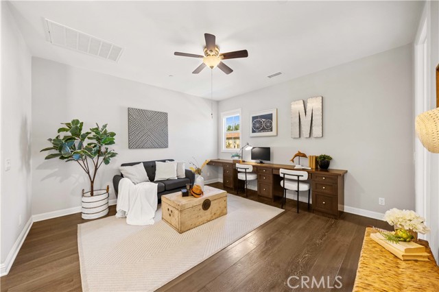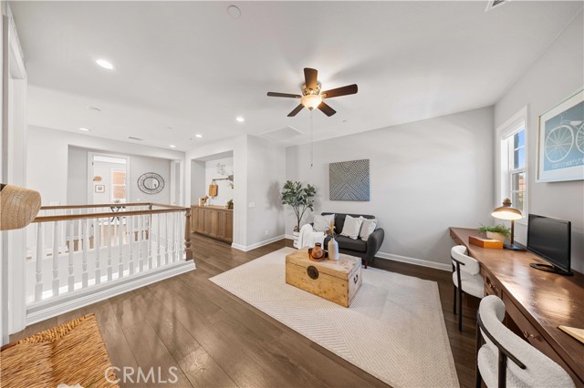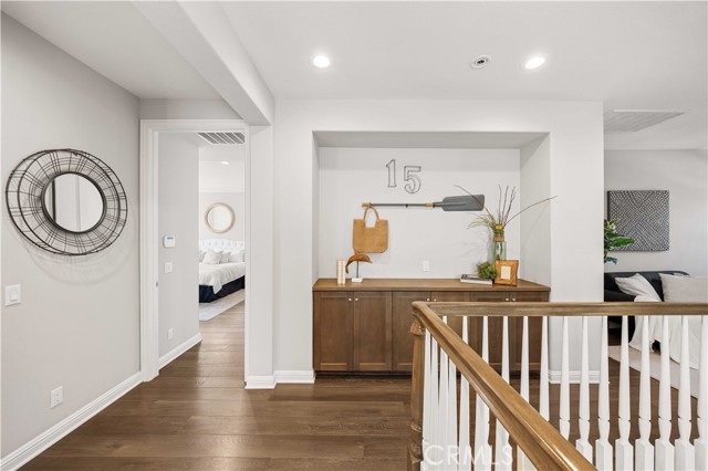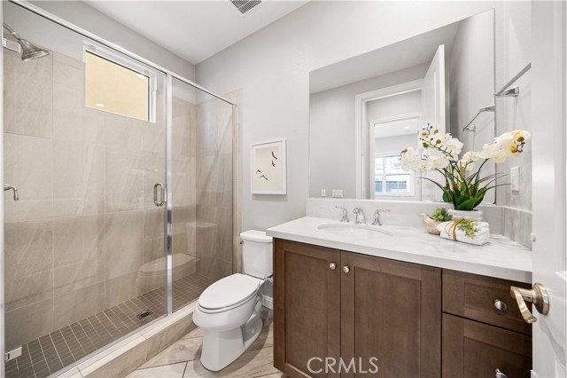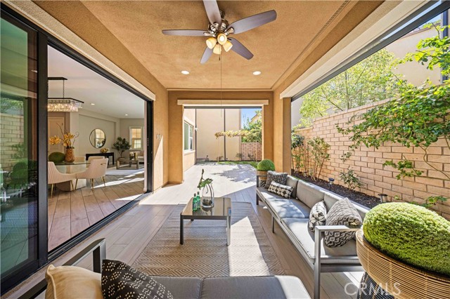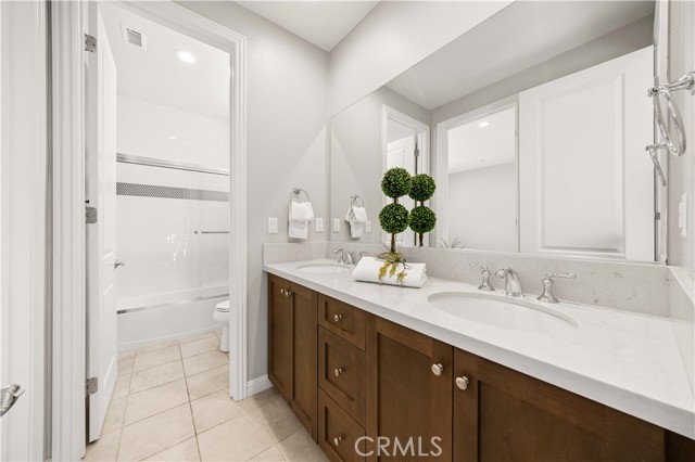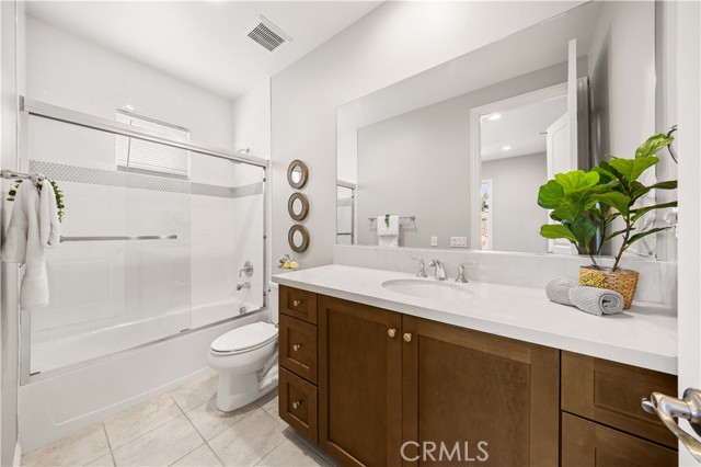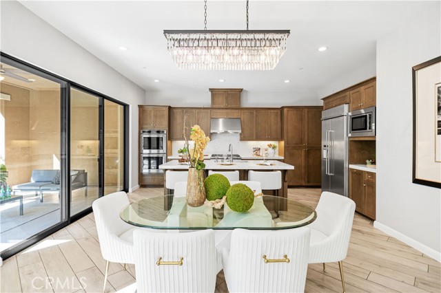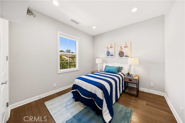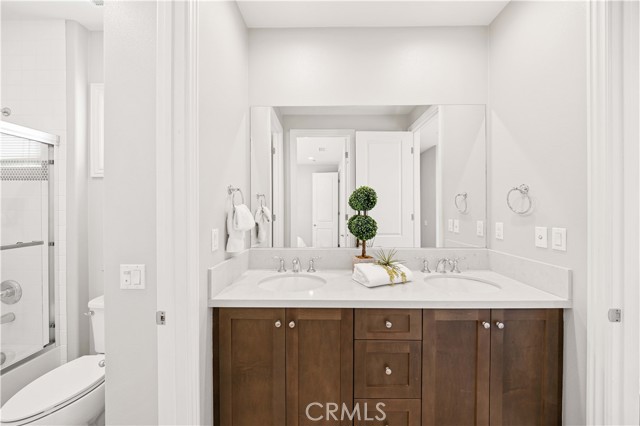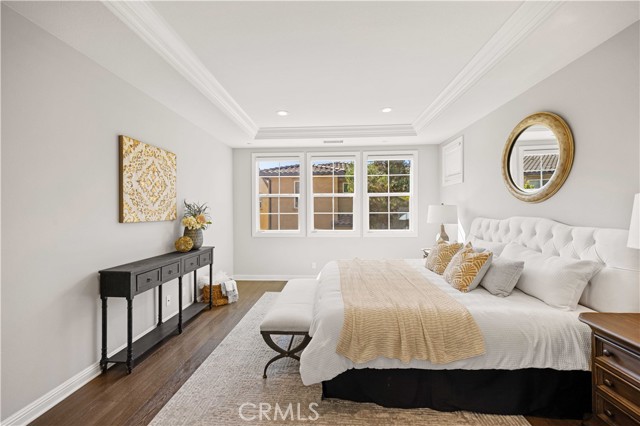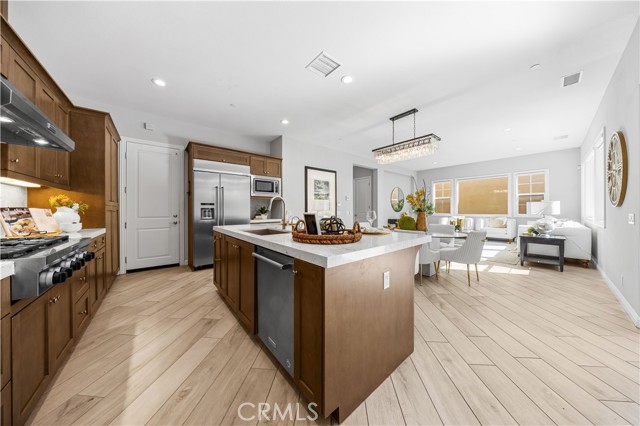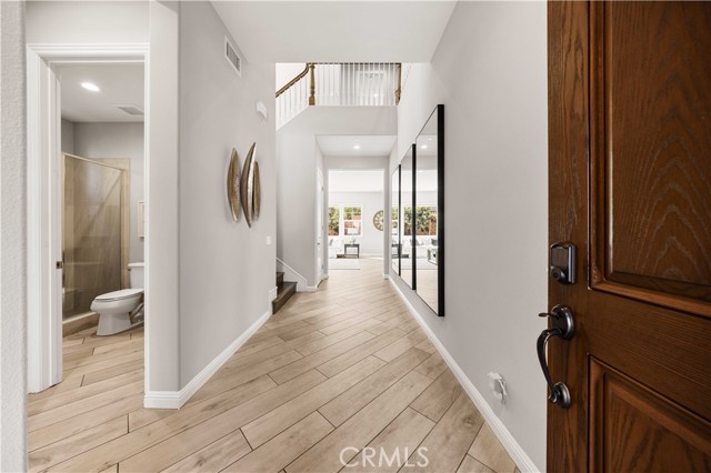 Elegantly refined and beautifully maintained, this single-family residence by Toll Brothers is nestled within the gated Parkside community in Lake Forest. Highly desirable two-story floor plan offers 5 bedrooms plus a loft and 4 bathrooms, including a convenient main-floor bedroom and full bath. Ideally oriented with a south-facing backyard, the home is filled with rich, natural light that elevates every living space. A welcoming entry hallway opens into expansive interiors that flow effortlessly between the great room, dining area, and chef’s kitchen, creating a warm and connected environment perfect for everyday living and entertaining. Gourmet kitchen showcases an oversized center island, upgraded stainless-steel KitchenAid appliances, and extensive warm-tone shaker cabinetry that provides abundant storage with a clean, polished aesthetic. Upstairs, a generously sized loft offers remarkable versatility—ideal as a second family room, study lounge, media retreat, or work-from-home space. Luxurious primary suite features dual vanities with upgraded counters and cabinetry, an extra-large frameless walk-in shower, and a custom-designed walk-in closet offering exceptional organization. An en-suite guest bedroom enhances privacy, while two additional secondary bedrooms share a stylish Jack-and-Jill bathroom with thoughtful layout and convenience. Refined interior appointments include customized Hunter Douglas modern light-filtering roller shades (motorized in the living room and primary bedroom), a crystal chandelier, recessed lighting, wood-look tile flooring on the main level, solid hardwood upstairs (no carpet), a whole-house water softener, and a kitchen sink filtration system. Both front and rear outdoor areas feature low-maintenance landscaping, tile hardscape, and tastefully arranged greenery, while the covered California room with a motorized screen extends indoor-outdoor living and offers a peaceful retreat year-round. Located directly across from the renowned 86-acre Lake Forest Sports Park and Recreation Center—featuring soccer fields, basketball courts, baseball diamonds, and a 27,000 sq. ft. gymnasium—this residence enjoys exceptional recreational access. With low HOA dues, no Mello-Roos taxes, and proximity to shopping, dining, major employment centers, transportation corridors, and scenic trails, it delivers a rare blend of comfort, sophistication, and convenience in a highly sought-after setting.