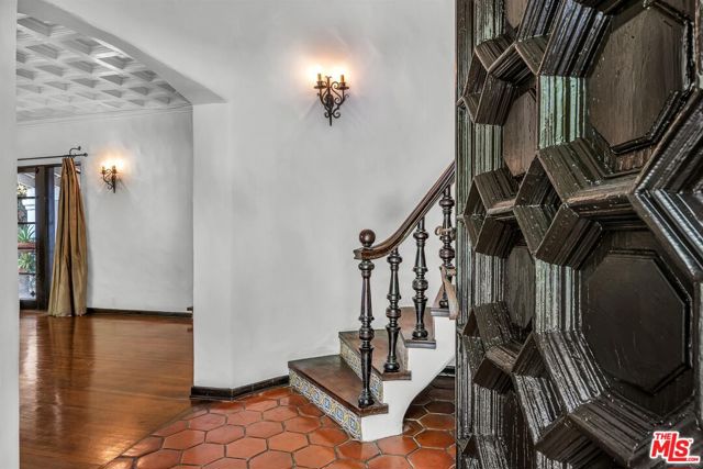 Timeless architecture meets cinematic history in this 1920s Spanish Revival masterpiece, a home that embodies the romance and craftsmanship of Old Hollywood. Located in the heart of Los Feliz Square, surrounded by historic homes, leafy streets, and proximity to local cafes, boutiques, and Griffith Park, this is a rare chance to reimagine a piece of Los Angeles history. Behind pristine white stucco walls and a classic red tile roof, arched doorways and wrought iron details reveal the artistry of a bygone era. A dramatic foyer opens to a living room crowned by an original wood coffered ceiling, anchored by an elevated dining room and dramatic staircase. With three bedrooms and two baths, plus a versatile den off the primary bedroom and a bonus room ideal for an office, the layout balances elegance and livability. Though ready for a thoughtful refresh, the home brims with potential, its Old World charm and solid bones offer endless design possibilities. The gated property provides off-street parking for four cars with an oversized detached garage with newer roof, perfect for an ADU or studio, plus room for a pool. Once home to prolific film director Erle C. Kenton, this residence was featured in "Los Feliz and the Silent Film Era", a testament to its enduring legacy and character. This is a rare chance to reimagine a piece of Los Angeles history.