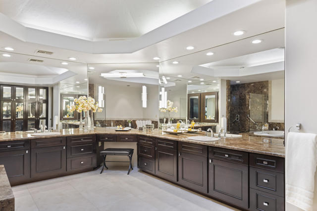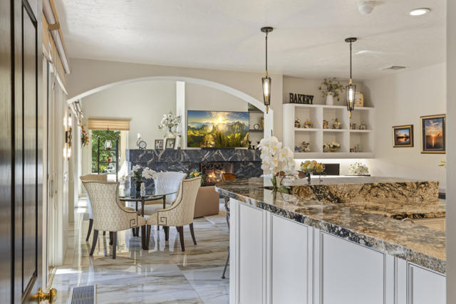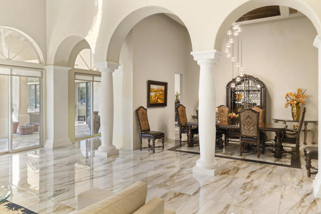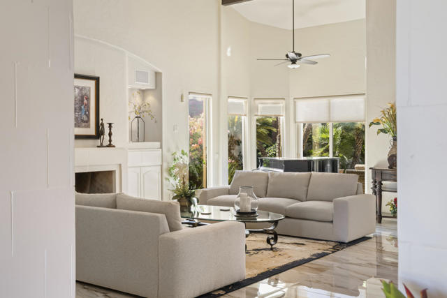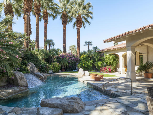 An Exceptional Opportunity to Own in Thunderbird Country Club's Prestigious Terrace!This rich and elegant 4-bedroom, 4-bath, 5,792 sq. ft. Mediterranean estate harmoniously blends timeless architectural sophistication with subtle contemporary flair. From the moment you enter, you're greeted by soaring exposed-beam ceilings, dramatic floor-to-ceiling windows, graceful archways, and wide gallery-style hallways that evoke a grand sense of space and light. Multiple fireplaces, refined finishes, and impeccable attention to detail lend an air of understated luxury throughout.The updated gourmet kitchen is a chef's dream--featuring a large center island with prep sink, an impressive walk-in pantry, and top-of-the-line stainless steel appliances. Its open-concept design flows seamlessly into the family room, offering a natural gathering space that opens directly to the patio and pool--ideal for effortless indoor-outdoor entertaining.The primary retreat is a serene sanctuary with its own fireplace, vaulted beam ceilings, and a spa-inspired ensuite boasting a deep soaking tub, glass-enclosed shower, and expansive walk-in closets. The additional bedrooms and baths are equally generous and versatile--one currently serving as a game room or home office.Step outside to your private desert oasis, where newly updated, low-maintenance landscaping complements the home's natural desert surroundings. Custom flagstone decking, a sparkling pool, built-in BBQ, and multiple lounging and dining areas create the perfect backdrop for entertaining or quiet relaxation--all enhanced by the soothing sound of a cascading rock waterfall and breathtaking mountain vistas.A spacious laundry room and garage accommodating multiple vehicles--including RV storage--complete this extraordinary home.A true Desert Gem, this Thunderbird Terrace residence offers the perfect balance of elegance, comfort, and effortless desert living--an exceptional opportunity in one of the Coachella Valley's most sought-after communities.
