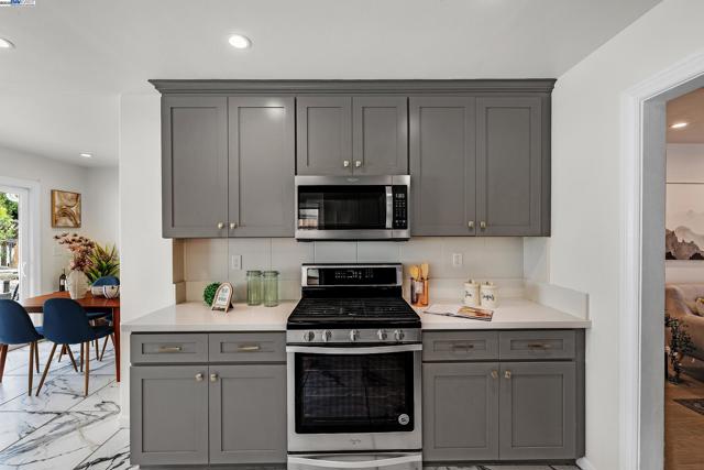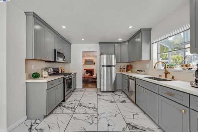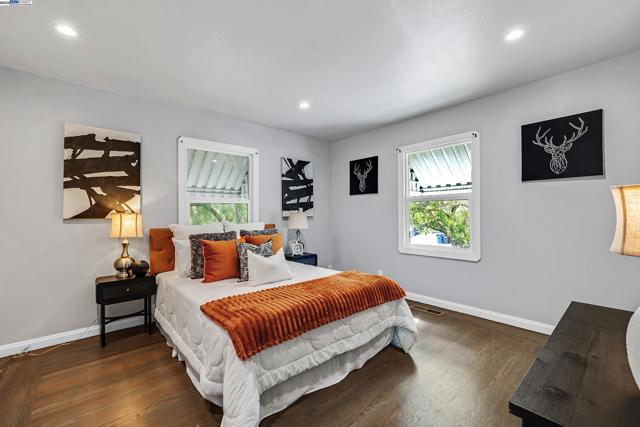 Welcome to this beautifully remodeled 3-bedroom, 2-bath home perched in the tranquil hills of Castro Valley where comfort, style, and convenience meet! Enjoy the best of Castro Valley living just minutes from Lake Chabot, top-rated schools, Eden Medical Center Hospital, BART, shopping, dining, gyms, and major freeways. The main home features 2 bedrooms and 1 bath, offering a bright, open layout with refinished hardwood floors, recessed lighting, and a fully remodeled kitchen complete with sleek cabinetry, stainless steel appliances, a gas range, and tasteful modern finishes. A versatile bonus room with its own full bath adds incredible flexibility perfect for a guest suite, private office, home gym, or creative studio. With fresh exterior paint, upgraded plumbing, energy-efficient windows, and plenty of parking, this move-in-ready home delivers modern comfort, everyday functionality, and an unbeatable location in one of Castro Valley’s most desirable neighborhoods.