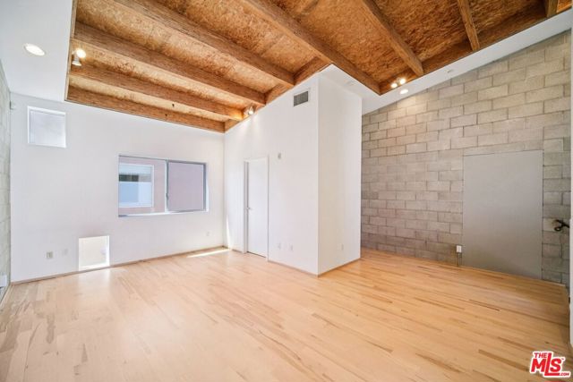 This carefully designed unit loft space provides a true live/work opportunity as allowed under the C2 Zone (offering tax benefits as well). This unit features a 3-level loft with an open floor layout, approximately 2,000 usable sq., ft. (included garage area) With its contemporary design and approximately 24 ft. high ceilings, this space emphasizes light and space. This exclusive live/work loft faces Highland Ave and also features hardwood maple floors, separate heating/air conditioning systems, exposed block walls, double insulated windows with a view, exterior deck, vaulted ceilings with open beam construction, and steel interior stairways. The kitchen and bathroom are fully equipped with new high-standard appliances and fixtures. There is also a two-car garage/work space with 11-ft ceilings. The building is fully secured with an exterior gate. Each unit in the building is wired for today's security and communication needs.