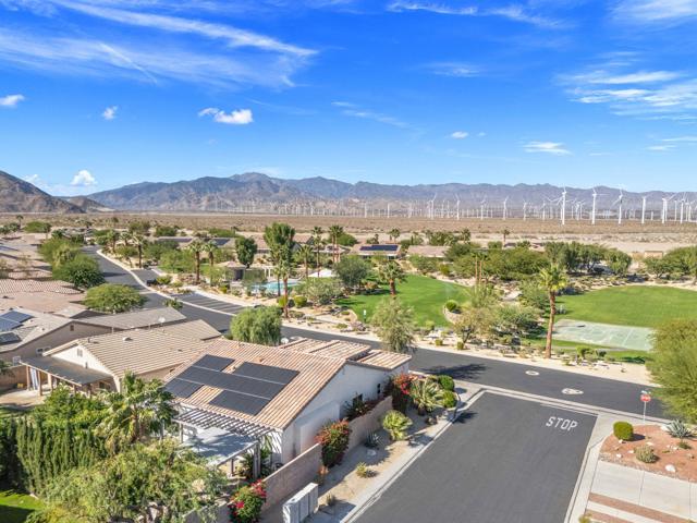 Comfort, space, and mountain views await in this Palm Springs gem!This 3-bedroom, 2-bath home offers 1,835 sq. ft. of beautifully updated living on a desirable corner lot. Inside, you'll find an open floor plan with high ceilings, fresh paint, and upgraded tile and Pergo flooring throughout -- perfect for entertaining and everyday living.The spacious kitchen is the heart of the home, featuring a grand island for gathering, granite countertops, and plenty of cabinet storage. Glass sliders open to a private, enclosed backyard surrounded by mature shrubs and framed by stunning mountain views -- an ideal space for relaxing or hosting friends.The primary suite provides a relaxing retreat with dual sinks, a walk-in closet, and a large en suite bathroom. Additional highlights include an indoor laundry room, two-car garage, and leased solar panels that keep electric costs low.Located just steps from the community pool and across from a well-manicured park, this home combines privacy and convenience. Residents enjoy low HOA dues and access to three pools and spas, tennis and basketball courts, BBQ and picnic areas, and a playground.Minutes from downtown Palm Springs, shopping, dining, and the Palm Springs Tram -- this is easy, affordable desert living at its best!