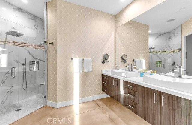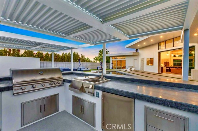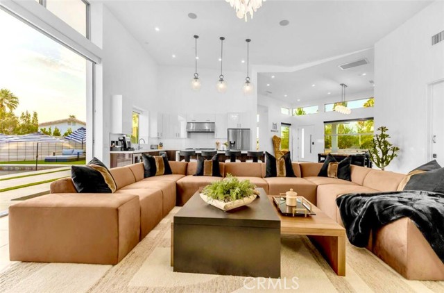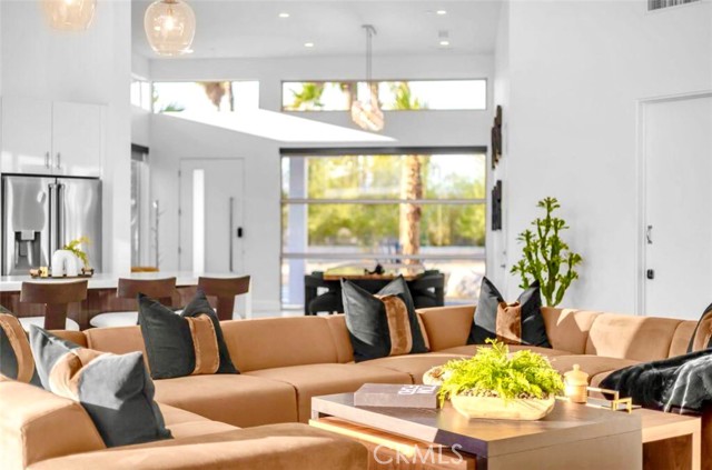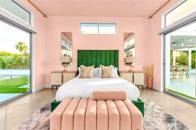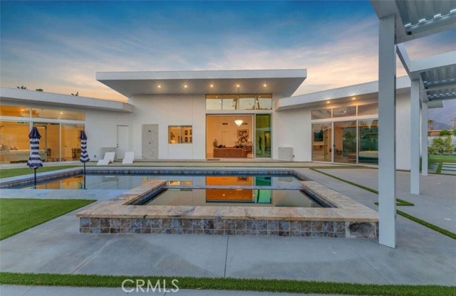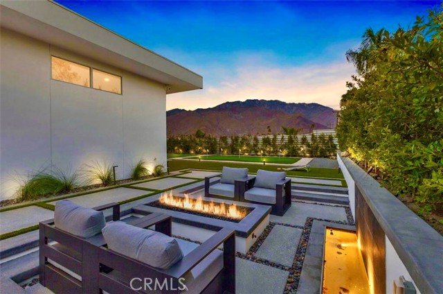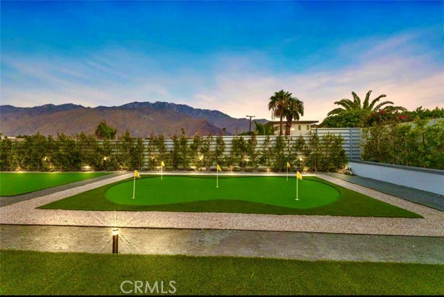 Discover “Miracle,” a breathtaking custom-built home nestled in Desert Park Estates, Palm Springs. This property boasts an oversized corner lot with stunning mountain views, seamlessly blending indoor and outdoor living. Soaring 18-foot ceilings add to the spacious feel of the home, while three grand master suites, each with its own washer and dryer, provide ultimate convenience. The interior, designed by Megan of Citizen Houses, features custom-tailored furniture and a unique hand-designed plaster painting by the spectacular designer Angelo Buonvincino on the living room’s central wall. Step outside to your private resort-like oasis, featuring a professionally designed outdoor living space with a modern BBQ bar, a custom-built modern shank-in fire pit by a serene water feature, and a putting green. The landscape also includes two playgrounds, making it perfect for entertainment. Experience the latest technology with an oversized smart patio that opens to 180 degrees and automatically closes when it rains. Every piece of outdoor furniture has been meticulously chosen to complement the luxurious ambiance. “Miracle” offers an unparalleled living experience in Palm Springs. The upscale retreat is just a stone's throw away from restaurants, golf courses, festivals, and Joshua Tree National Park. All the furniture is included. Perfect for Airbnb. Str licenses available.