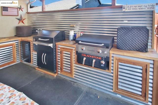 Beautifully updated single-story home! Superb court location. Great curb appeal and covered porch welcome you & your guests. Remodeled kitchen with slab granite counters, custom tile backsplash, stainless steel appliances, painted cabinets with pulls & more. Gorgeous LVP flooring in most of the home. Plantation shutters & window casing. Custom ceiling fan/light fixtures in nearly every room. Vaulted ceilings. Fireplace with custom tile surround. Efficiently laid out floorplan has living, dining & family rooms! Updated bathrooms. Amazing back yard is perfect for outdoor living! Relax, play & entertain under the spacious Alumawood patio cover with built in carriage lights, 2 large custom ceiling fan/light fixtures & outdoor kitchen with custom cabinetry & great appliances. Yard features a flagstone patio, fenced & gated lawn area, water fountain, planter boxes, party lights & more. 2 storage sheds! Installed 16 panel solar system. Roof & HVAC system replaced. Laundry area with extra cabinetry in the garage. Washer & dryer stay. Extra-wide driveway. Security screen door in front of the home. Neighborhood park at entry to court, larger Walnut Park is just a couple blocks away and wonderful downtown Brentwood is just a few minutes away. So much to love about this home and location!