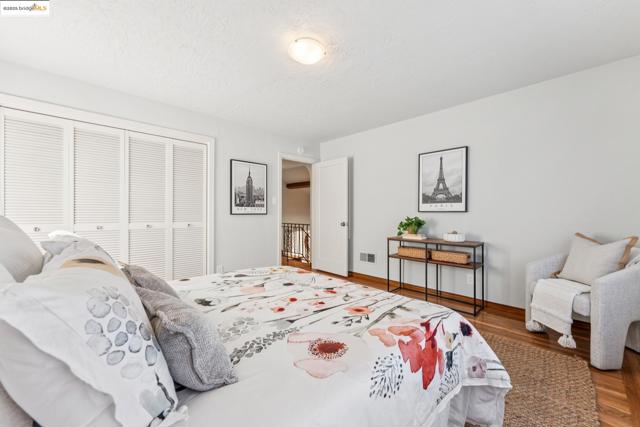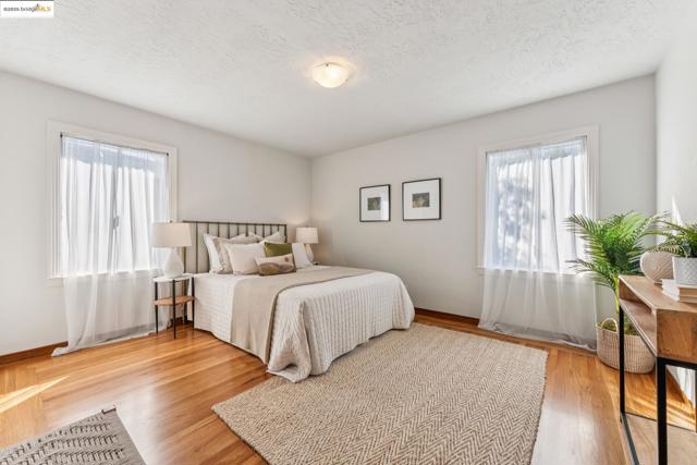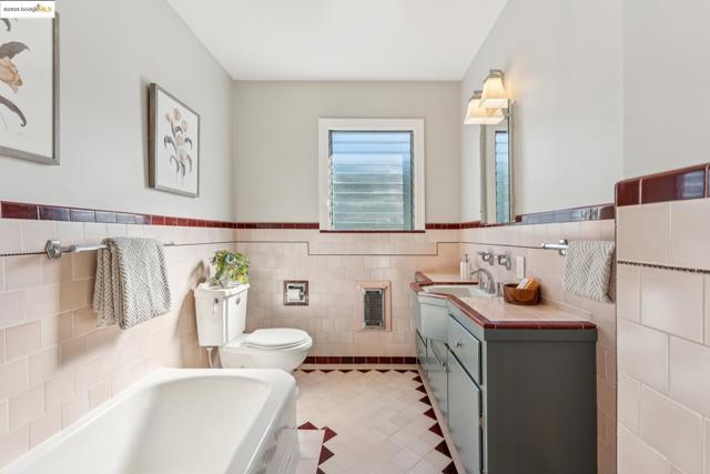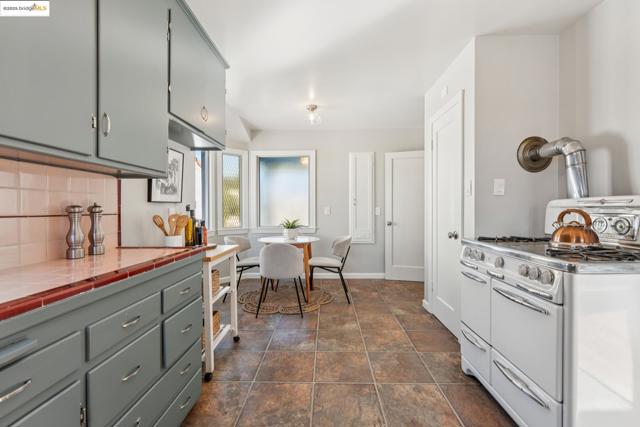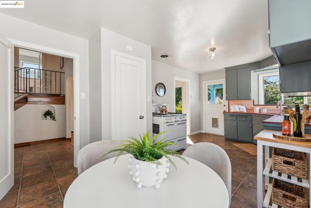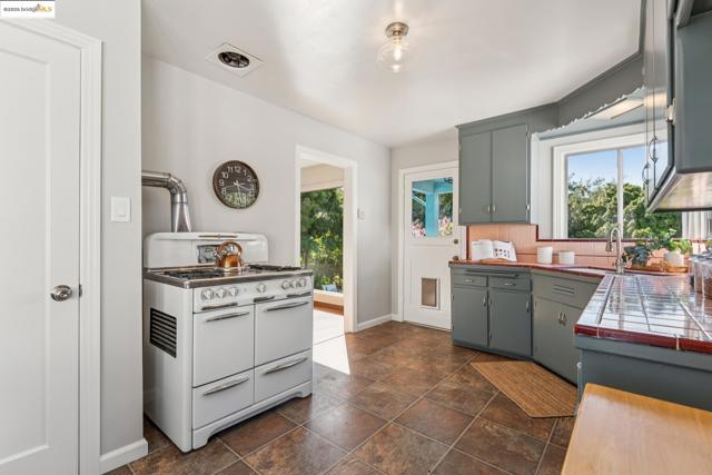 This custom-built, MacGregor-style, split-level gem is nestled at the end of a cul-de-sac in a prime location in El Cerrito. The professionally-designed front garden, which is frequently visited by hummingbirds and butterflies, greets guests upon arrival. Once inside, take in the elegant and beautiful entry hall with a soaring open-beamed ceiling, arched doorways, hardwood-floored adjacent rooms, plus a graceful stairway with wrought iron railings. The light-filled, large living room features a pellet stove fireplace insert, and the formal dining room offers a picture window view of the backyard. The vintage kitchen, complete with a Wedgewood stove and door to the backyard, is connected to the cheery breakfast room for leisurely morning coffee. Up the stairs are two bright and good-sized bedrooms, plus a full, charming, vintage bath. A few stairs down from the entry hall is the tidy garage with laundry, and a large, bonus room with a half bath and a door to the backyard. Mature trees grace the fenced backyard, which offers a shed and plenty of options for relaxing, playing, or gardening. Fantastic central location with convenient access to El Cerrito Plaza shops and restaurants, BART, and public transportation.
