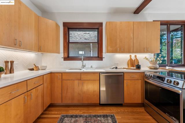 Welcome to this stunning Craftsman-level home in the heart of Rockridge. With 3 bedrooms and 1 bathroom across 1,280 sq ft of thoughtfully maintained living space, this home exudes timeless charm and pride of ownership—a perfect harmony of modern living and authentic Craftsman detail. Inside, you’ll find oak floors with walnut inlay, a box-beam ceiling, original built-ins, and a striking stone fireplace—all complemented by recessed lighting and exquisite Hansen Custom wood windows. The kitchen features stainless steel appliances, and Cat6 Ethernet wiring extends to every room for seamless connectivity. Upgrades include a 200-amp electrical panel, new wiring throughout, updated plumbing, and refreshed landscaping—just a few of the many improvements made over the years. Sewer lateral compliant and move-in ready, the home also offers a back deck overlooking a lush, sun-filled backyard—perfect for relaxing or entertaining. A spacious, full basement provides ample storage and offers potential for future expansion. Enjoy walkability to College Avenue’s shops and restaurants, easy highway access, and a quick hop to Rockridge BART. This home blends location, lifestyle, and craftsmanship—truly a special place to call home.