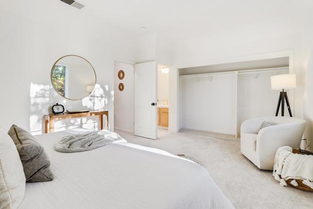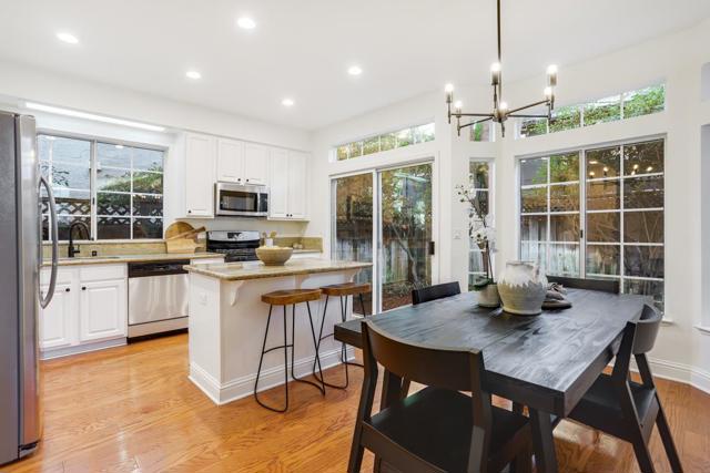 Step through the double front doors into an impressive, light-filled sanctuary in a prime Santa Clara location. Soaring vaulted ceilings and abundant windows create a bright, airy, and contemporary atmosphere ideal for modern living. The main level showcases beautiful hardwood flooring and a spacious living area, complete with a cozy gas fireplace, leads into the heart of the home: an open kitchen perfect for entertaining. The kitchen features granite slab countertops, a functional island with counter seating, sleek stainless steel appliances, and a pantry. A major highlight is the convenient downstairs bedroom with an adjacent full bathroom and walk-in showerperfect for guests or a home office. Upstairs, the expansive Primary Suite serves as a true retreat. It boasts an attached bathroom with double sinks, a large bathtub, and a spacious closet. The remaining bedrooms are well-sized, served by a full guest bathroom. This home is move-in ready with new interior paint, new lighting fixtures, and new carpet upstairs. Additional features include central heating & cooling, dual-pane windows, LED lighting.The property is complete with a large attached 2-car garage and a private backyard featuring a concrete slab perfect for a patio, framed by mature trees.