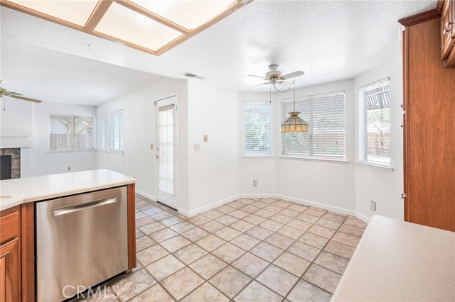 Spacious and move-in ready! This impressive 4 bedroom, 3 bathroom home offers room to grow with owned solar and thoughtful updates throughout. Step inside to a bright living room and formal dining area that flows into the kitchen, featuring a bonus eating nook and adjacent second family room perfect for entertaining. Enjoy fresh interior paint, new carpet in the bedrooms, and updated baseboards. A guest bedroom and full bath on the main floor provide ideal space for visitors or multi-generational living. Upstairs, find three additional bedrooms with ample closet space, including a luxurious primary suite with a dual-sided fireplace, soaking tub, separate shower, and walk-in closet. The 3-car garage includes a converted flex space with wall AC, ideal for a home office, gym, or studio easily converted back if desired. Sitting on a large lot, the backyard features a covered patio, plenty of grassy space, and potential for a pool. Conveniently located near Fahrens Park, the Marketplace at Merced, and Merced College. Don't miss this incredible opportunity!