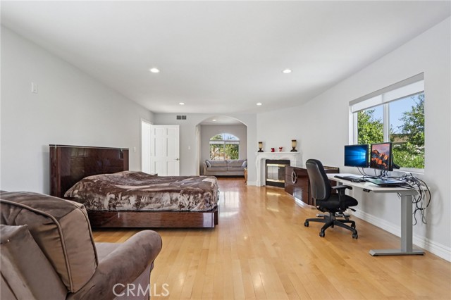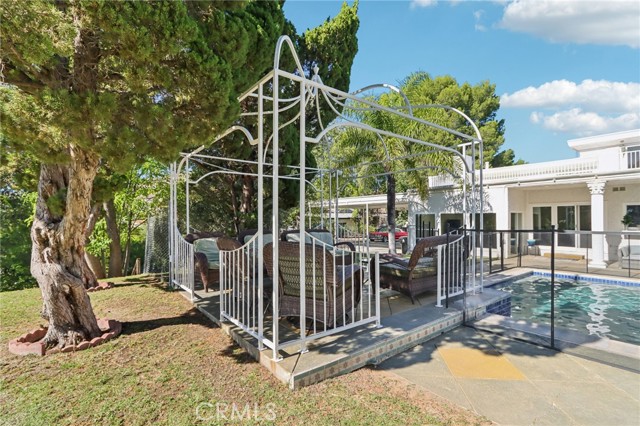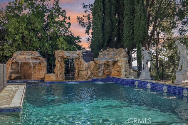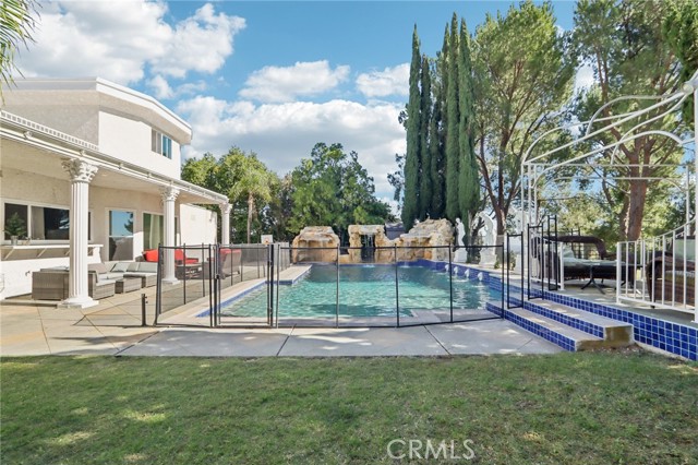 Luxurious Mediterranean Modern Villa in Prestigious Granada Hills. Nestled north of Rinaldi in the highly sought-after Granada Hills enclave, this breathtaking Mediterranean modern villa embodies the perfect fusion of timeless elegance and contemporary sophistication. Boasting over 4,800 square feet of meticulously designed living space on a rare double lot spanning more than 26,700 square feet, this residence offers both grandeur and serenity in every corner. Step through the impressive double doors and be welcomed into a home designed for true entertainers. The open-concept floor plan is bathed in natural light, showcasing seamless transitions between the expansive living areas. The grand living room, anchored by a sleek gas fireplace, flows effortlessly into the formal dining room—perfect for intimate dinners or lavish gatherings. The chef’s kitchen is a culinary masterpiece, featuring modern cabinetry, quartz countertops, and premium appliances, all opening to a spacious family room ideal for relaxed living. The primary suite is a private sanctuary complete with its own balcony, spa-inspired en-suite bathroom with dual sinks, a soaking tub, a glass-enclosed shower, and an elegant dressing/sitting area with generous closet space. Step outside to an entertainer’s paradise, where a covered patio overlooks a sparkling pool and spa with a cascading waterfall, a charming gazebo, and tranquil canyon views—the perfect backdrop for year-round enjoyment. Additional highlights include, bonus room ideal for a game room or gym, copper plumbing, upgraded central A/C, a quiet cul-de-sac location, and expansive grounds with ample space to add an ADU or further customize your private retreat. This is truly a one-of-a-kind estate—a rare blend of luxury, privacy, and exceptional value—making it one of the best-priced luxury homes in Granada Hills.